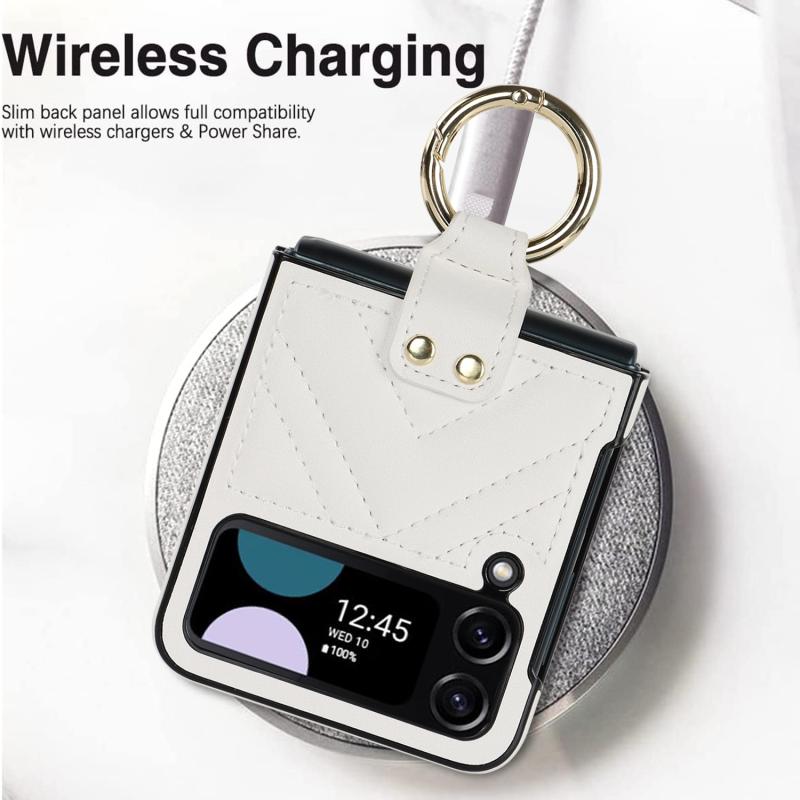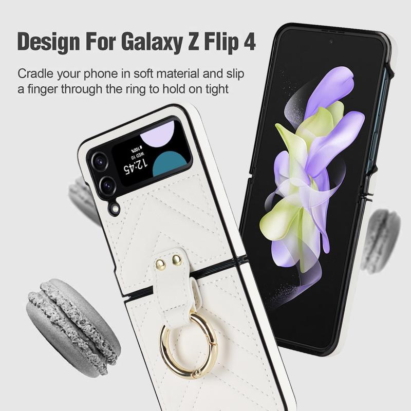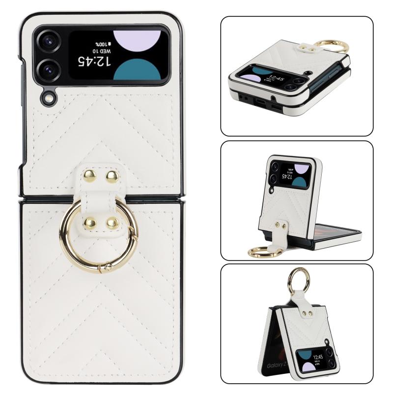For Samsung Galaxy Z Flip4 V-shaped Folding Protective Phone Case with Folding Ring(White)