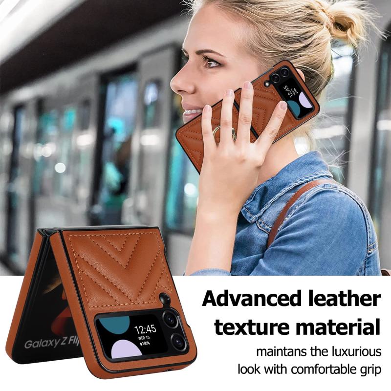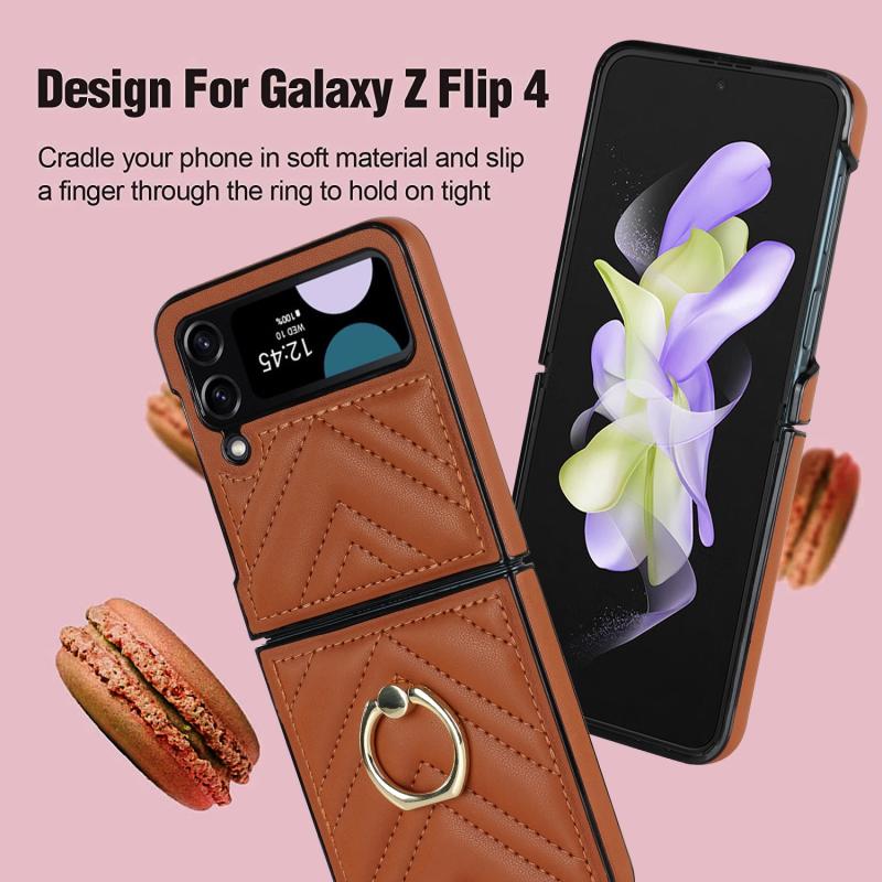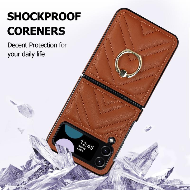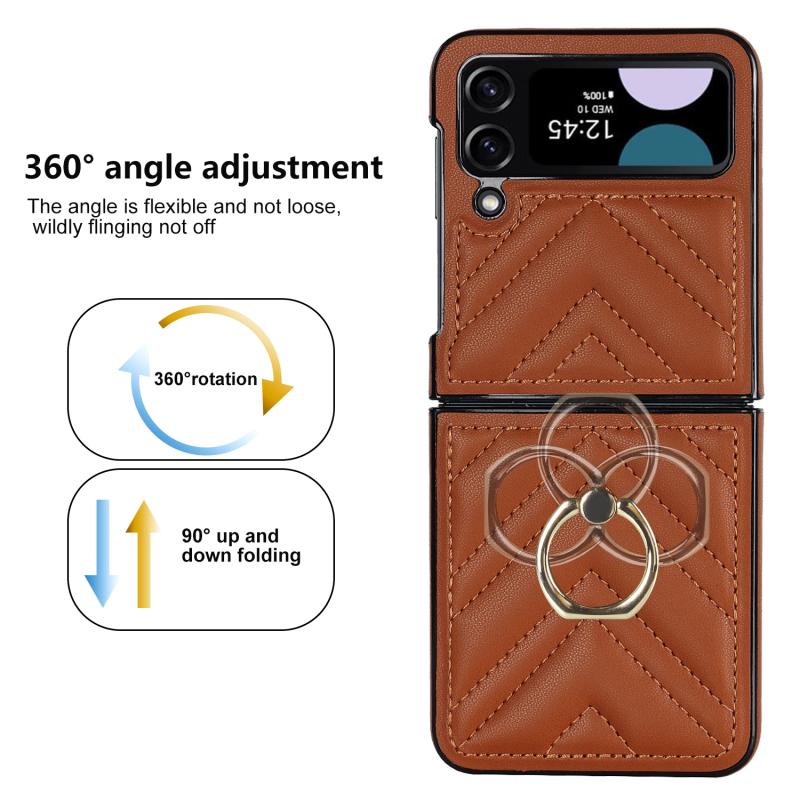 For Samsung Galaxy Z Flip4 V-shaped Folding Protective Phone Case with Rotating Ring(Brown)