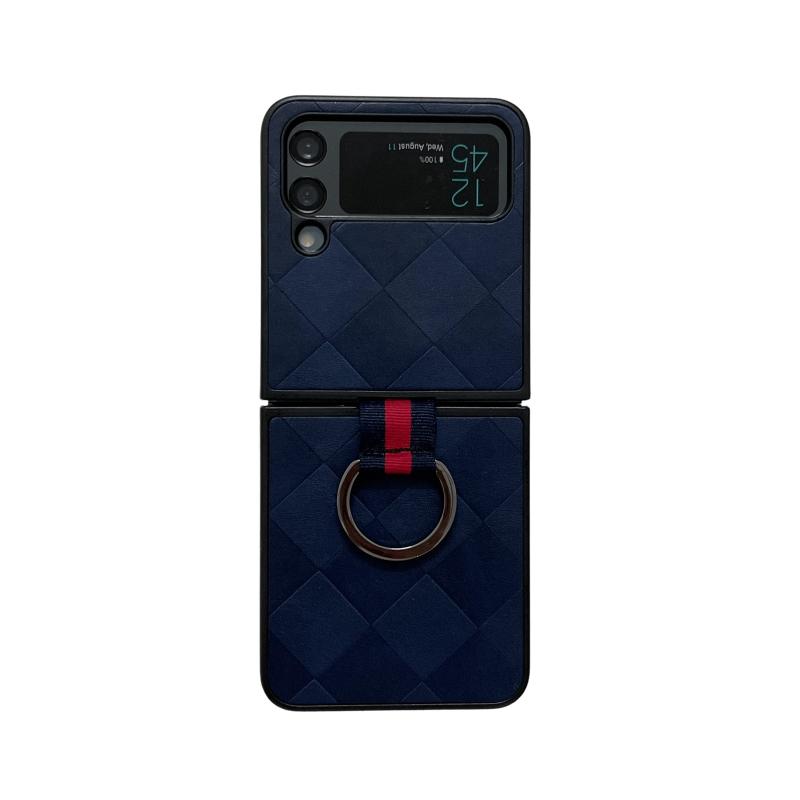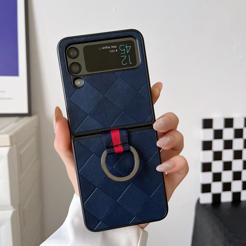 For Samsung Galaxy Z Flip4 Weave Plaid PU Phone Case With Ring(Blue)