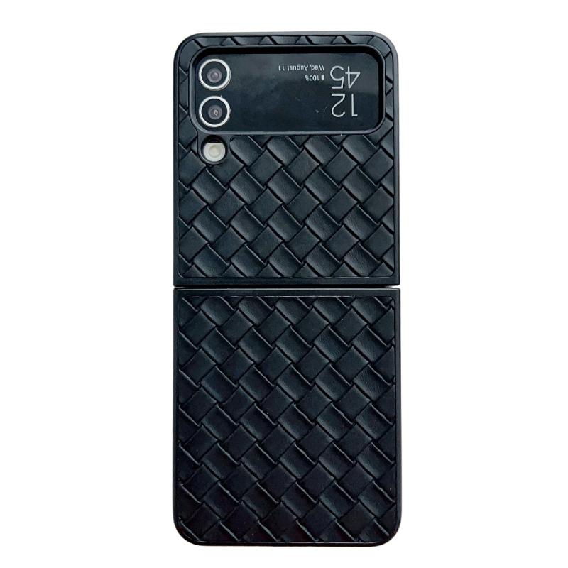 For Samsung Galaxy Z Flip4 Woven Texture Folding PU Phone Case(Black)