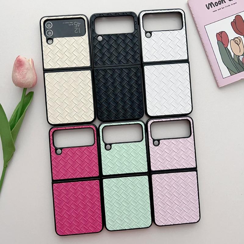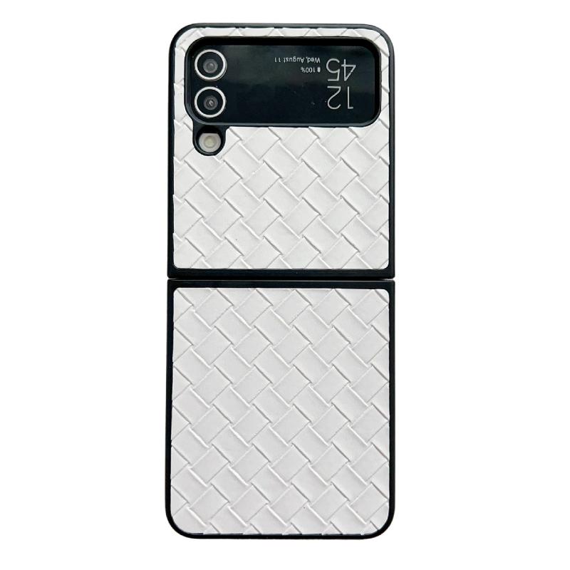 For Samsung Galaxy Z Flip4 Woven Texture Folding PU Phone Case(White)