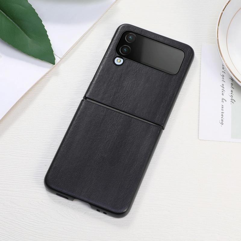 For Samsung Galaxy Z Flip4 Yellow Cow Texture PU Phone Case(Black)