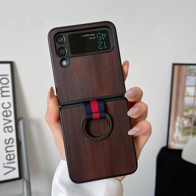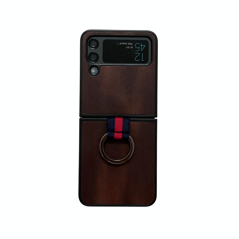 For Samsung Galaxy Z Flip4 Yellow Cow Texture PU Phone Case With Ring(Coffee)