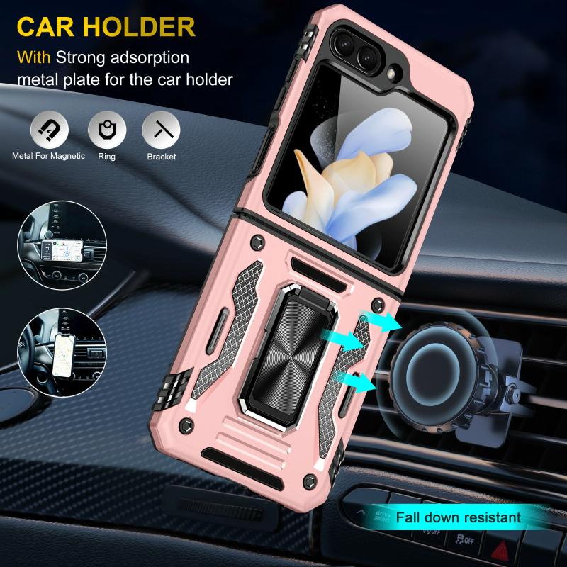 For Samsung Galaxy Z Flip5 5G Armor PC + TPU Camera Shield Phone Case(Rose Gold)