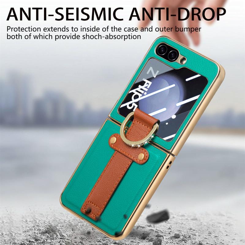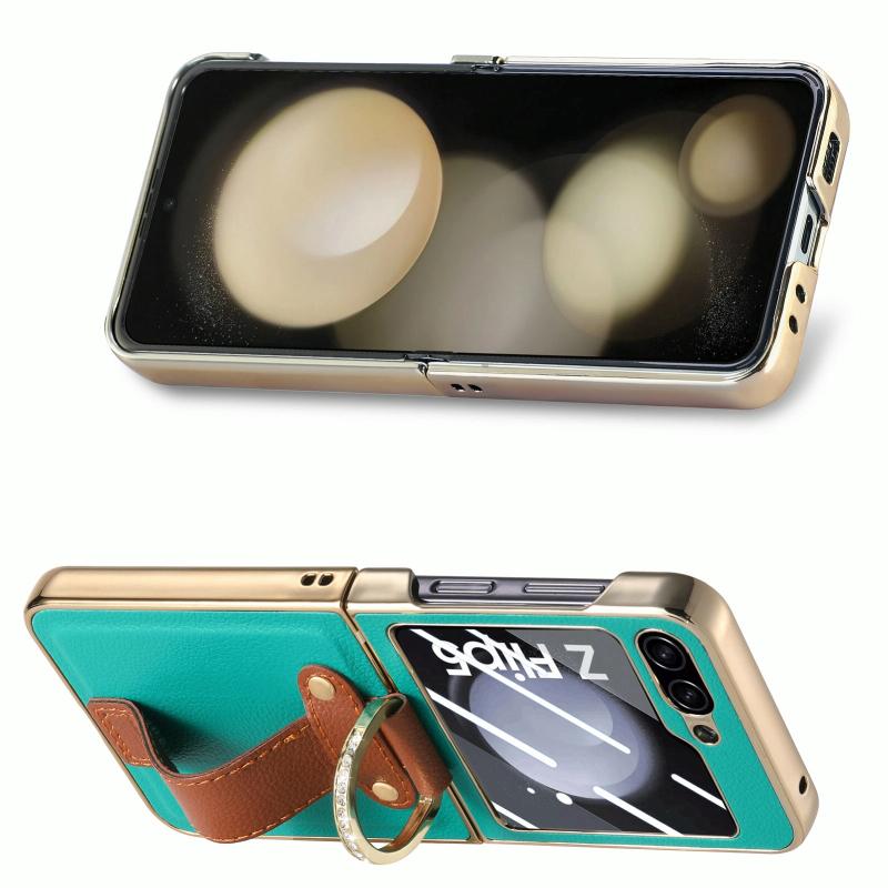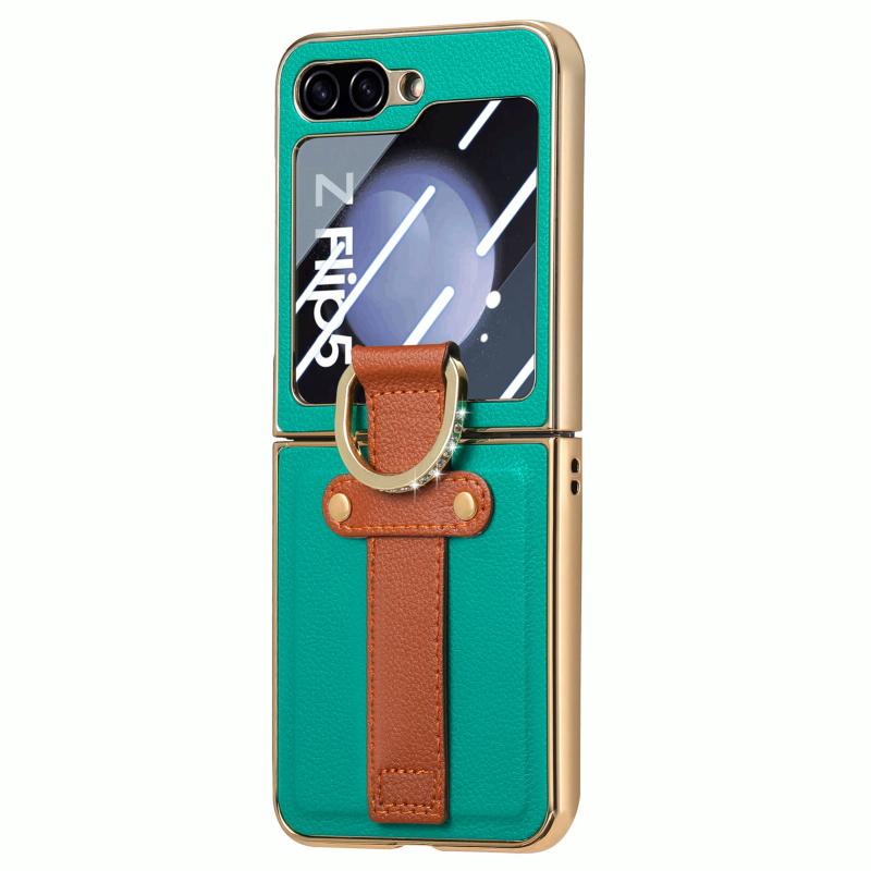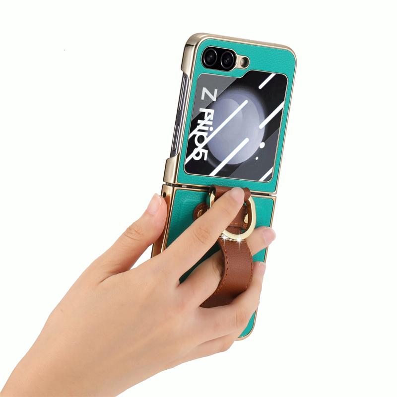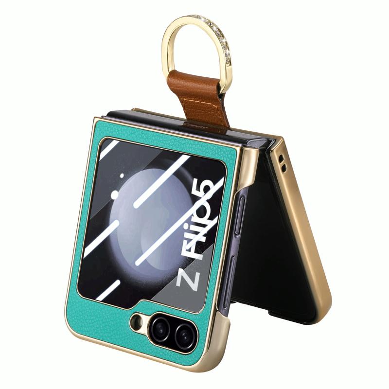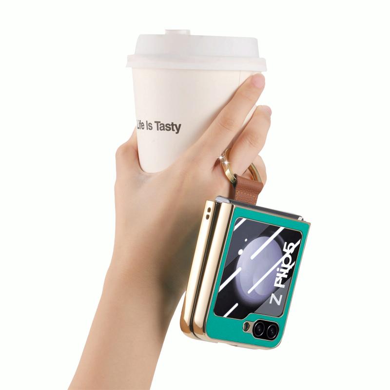 For Samsung Galaxy Z Flip5 5G Brilliant Plating PC Back Screen Integrated Ring Phone Case(Green)