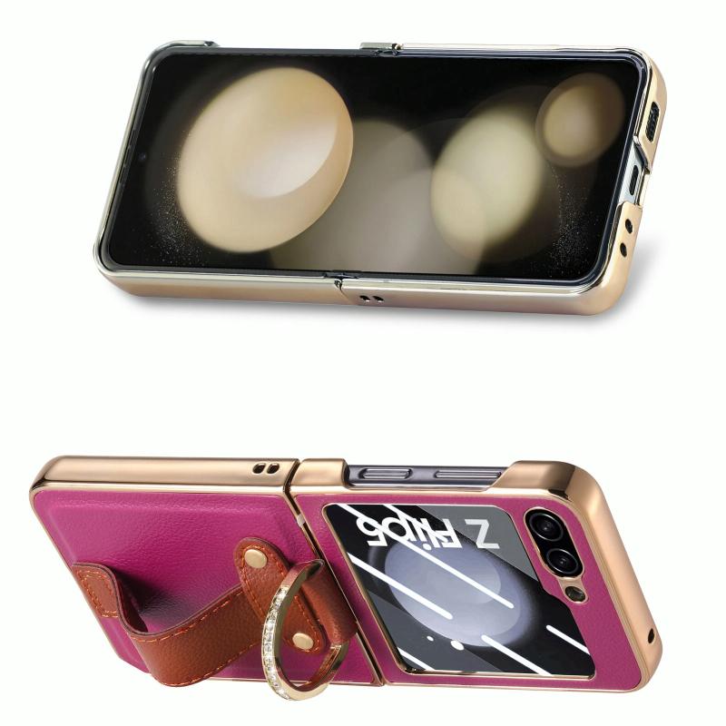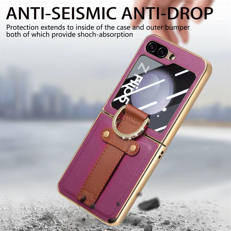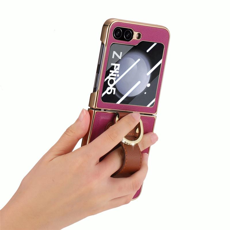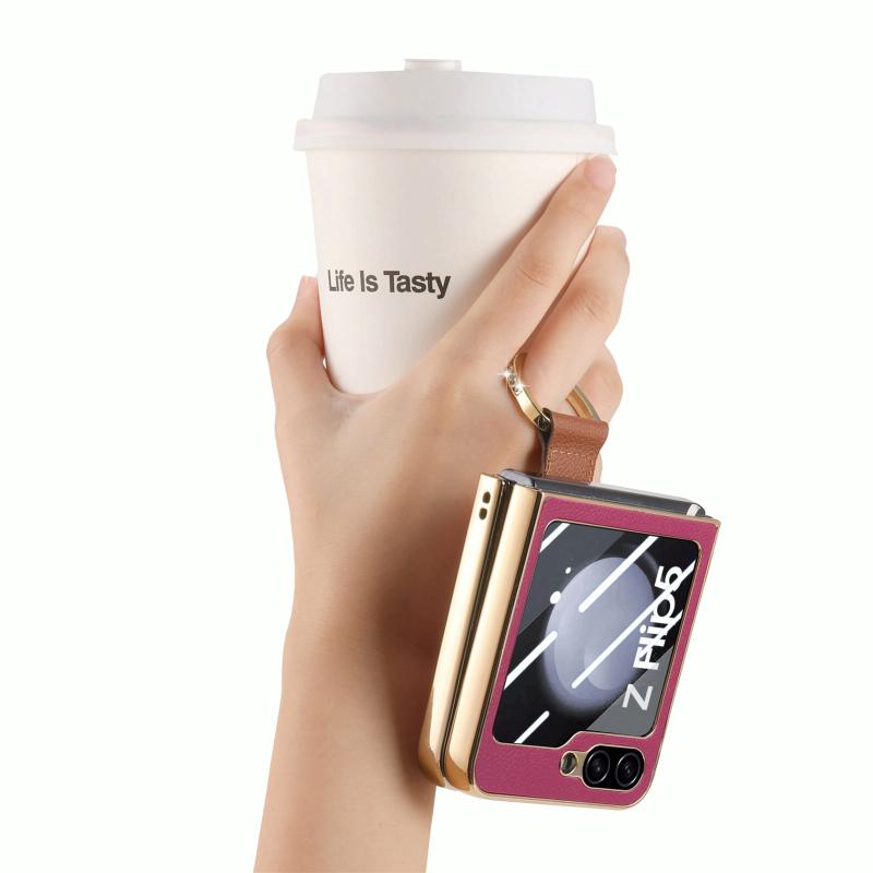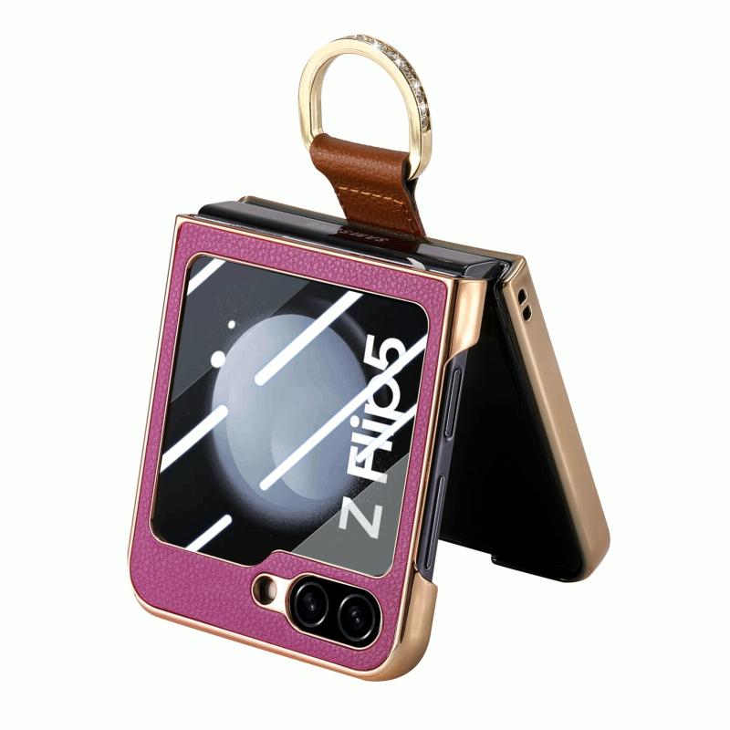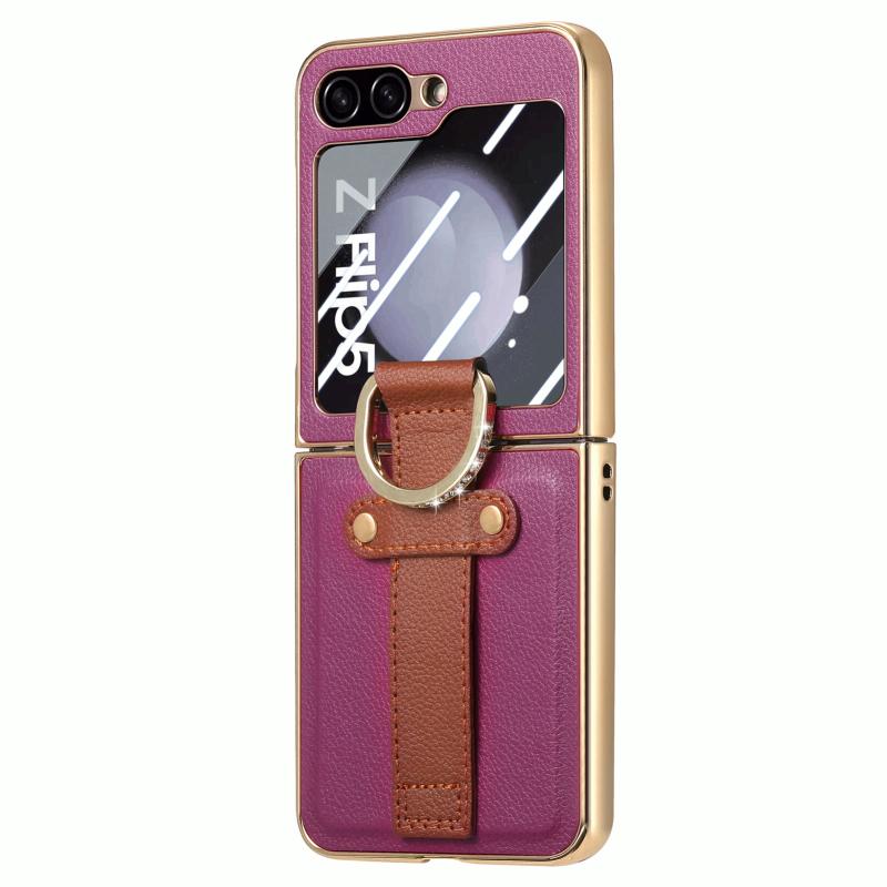 For Samsung Galaxy Z Flip5 5G Brilliant Plating PC Back Screen Integrated Ring Phone Case(Purple)