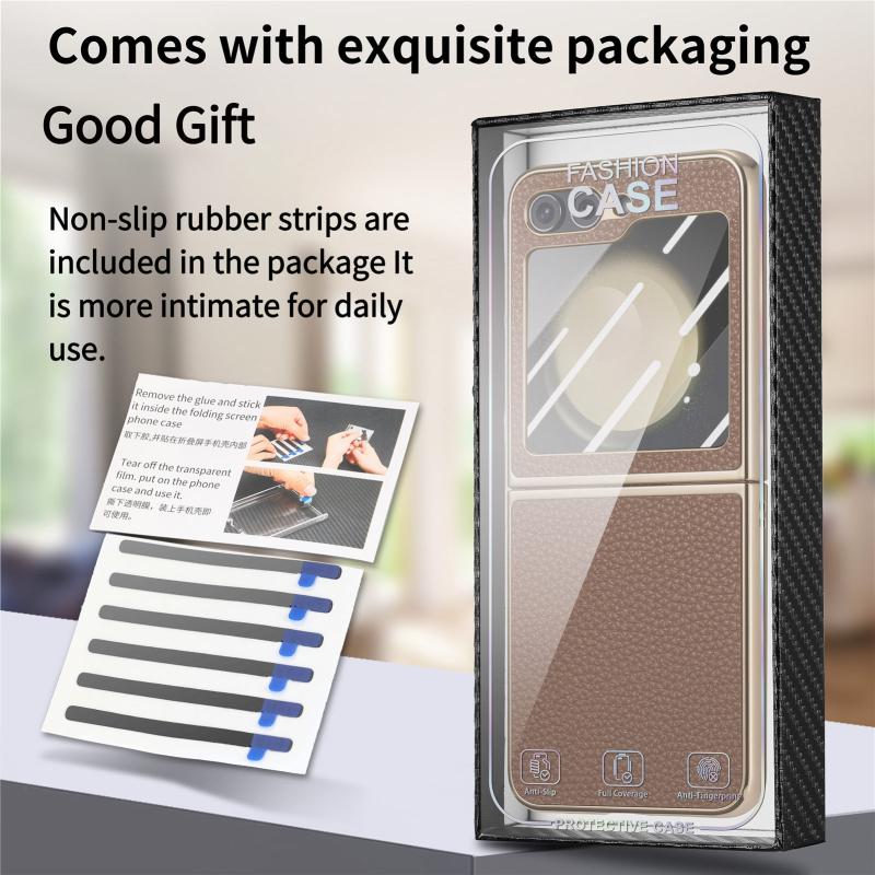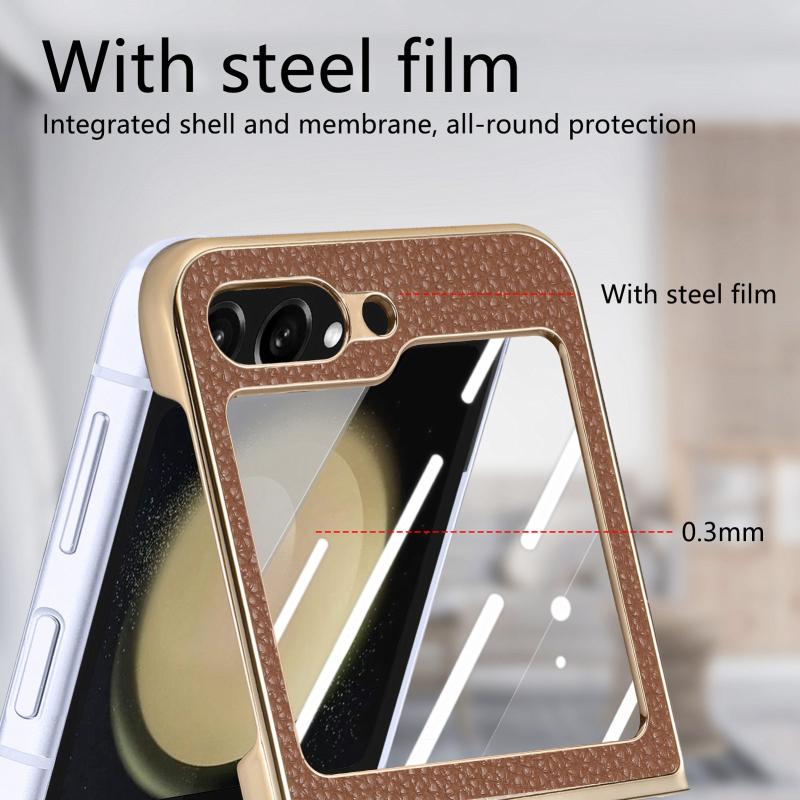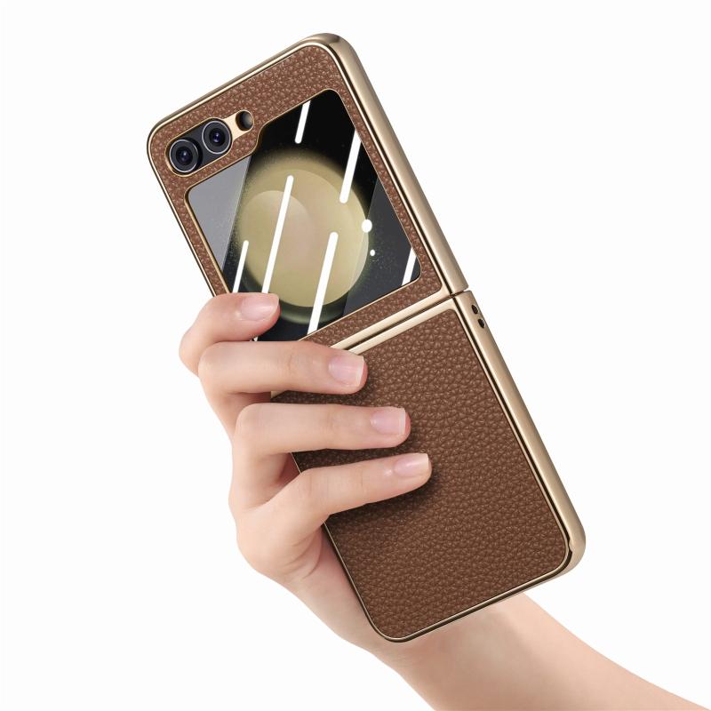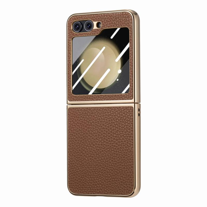 For Samsung Galaxy Z Flip5 5G Electroplated Back Screen Integrated Litchi Texture Phone Case(Brown)