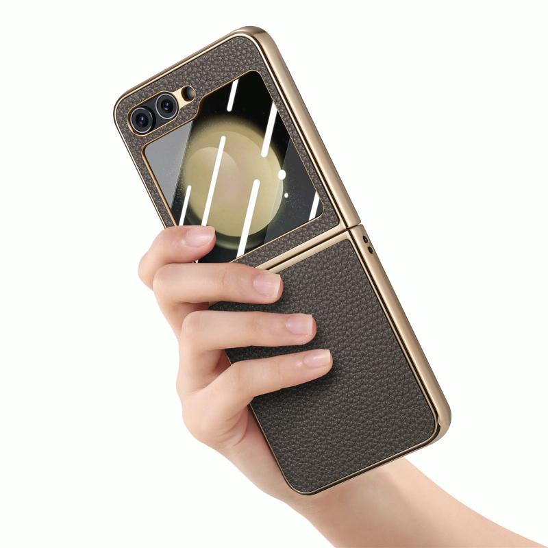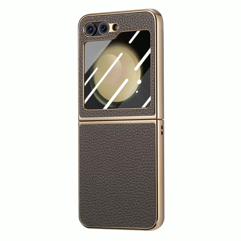 For Samsung Galaxy Z Flip5 5G Electroplated Back Screen Integrated Litchi Texture Phone Case(Grey)