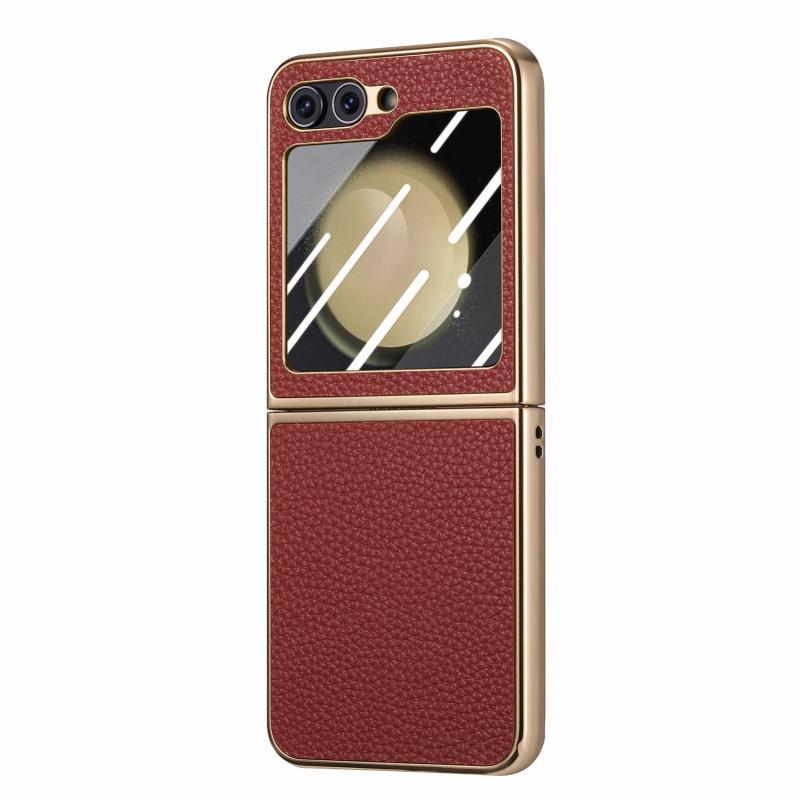 For Samsung Galaxy Z Flip5 5G Electroplated Back Screen Integrated Litchi Texture Phone Case(Red)