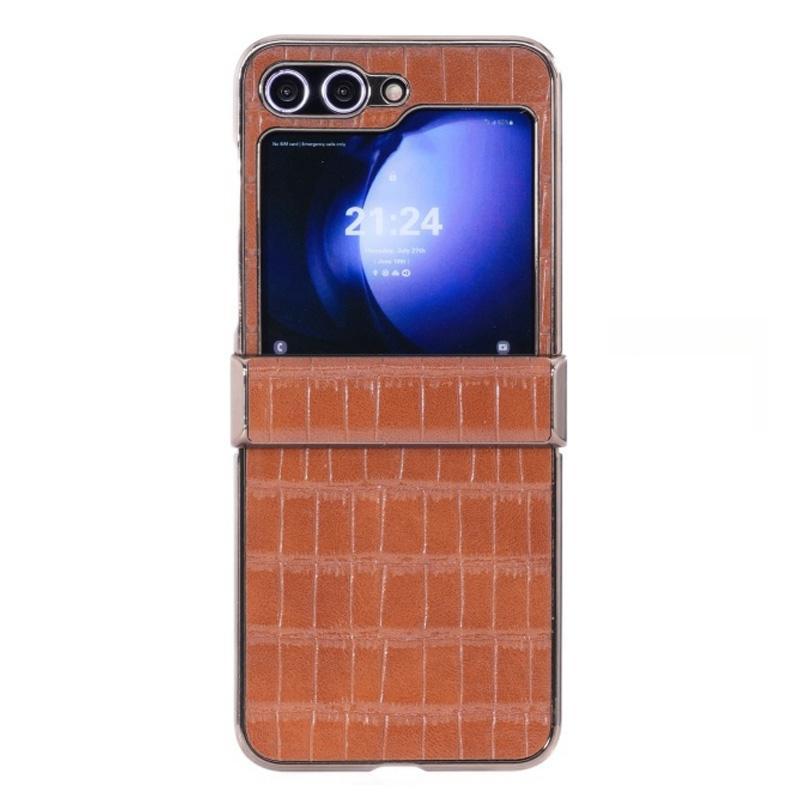 For Samsung Galaxy Z Flip5 5G Electroplated PC Crocodile Pattern Folding Phone Case(Brown)