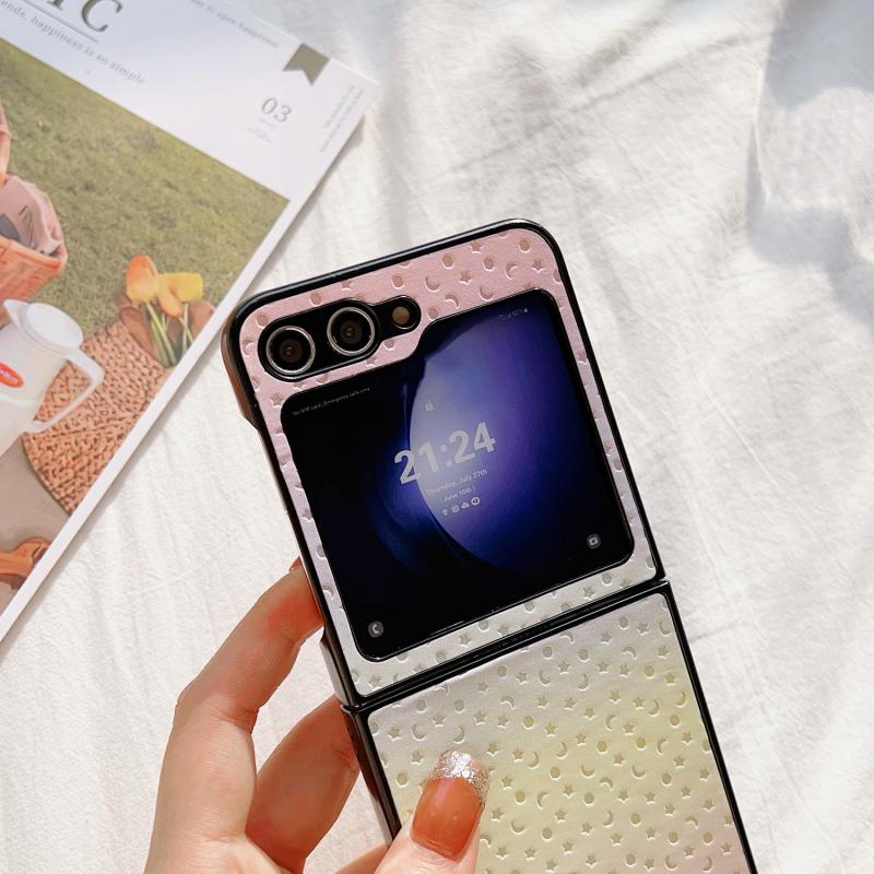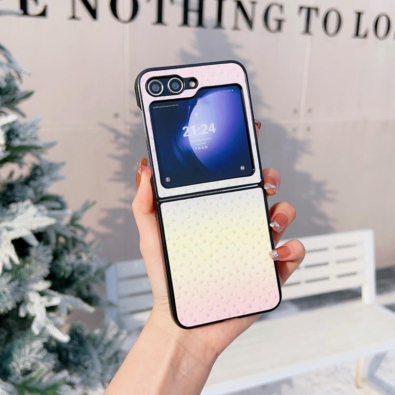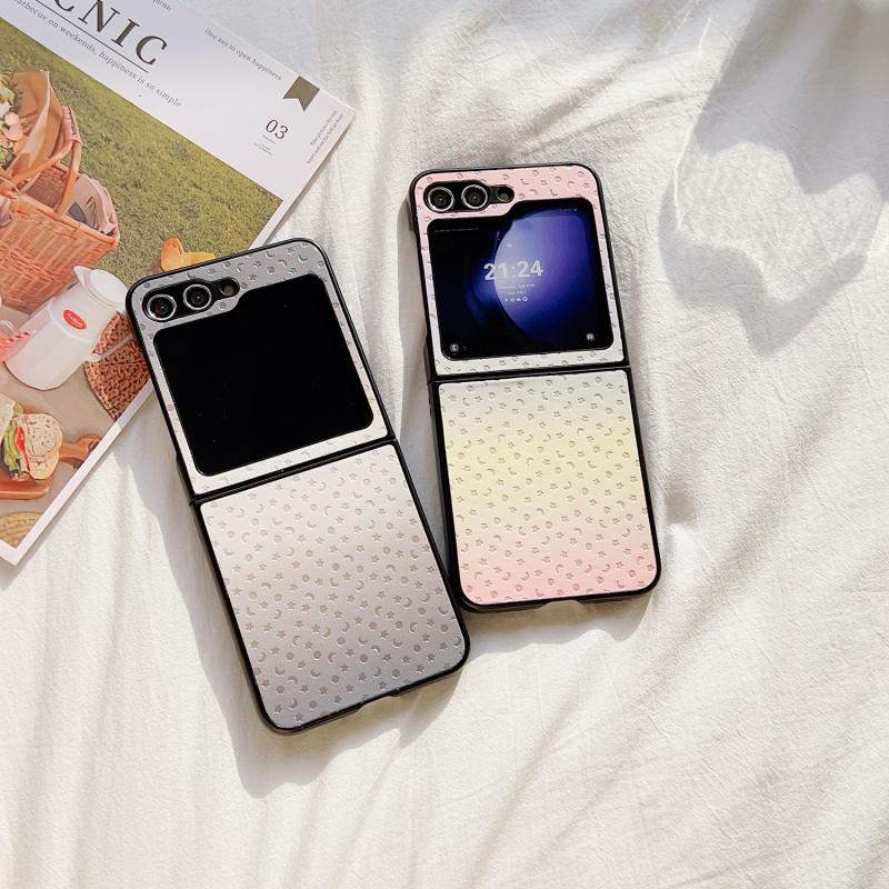 For Samsung Galaxy Z Flip5 5G Gradient Stars Moon PC Shockproof Phone Case(Pink)