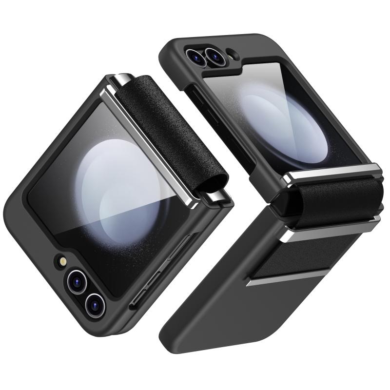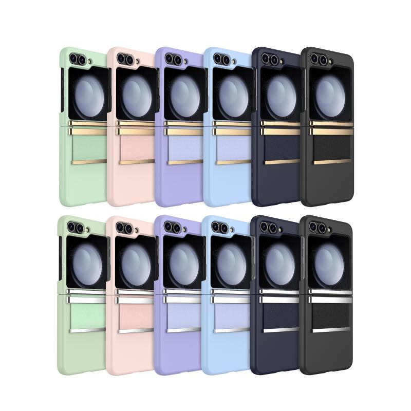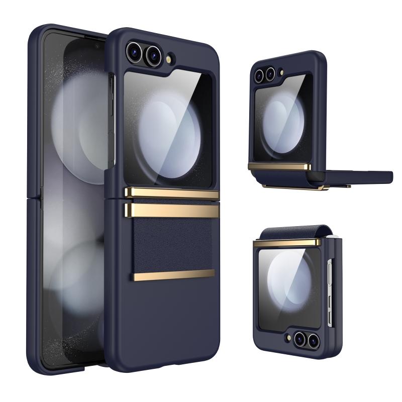 For Samsung Galaxy Z Flip5 5G Hardware Foldable Leather Shockproof Phone Case(Dark Blue Gold)