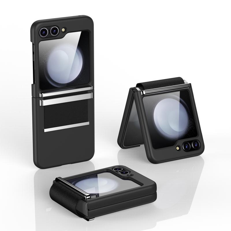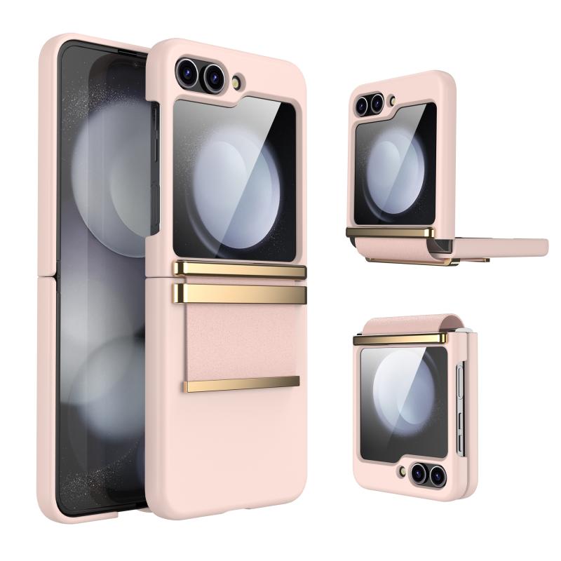 For Samsung Galaxy Z Flip5 5G Hardware Foldable Leather Shockproof Phone Case(Pink Gold)