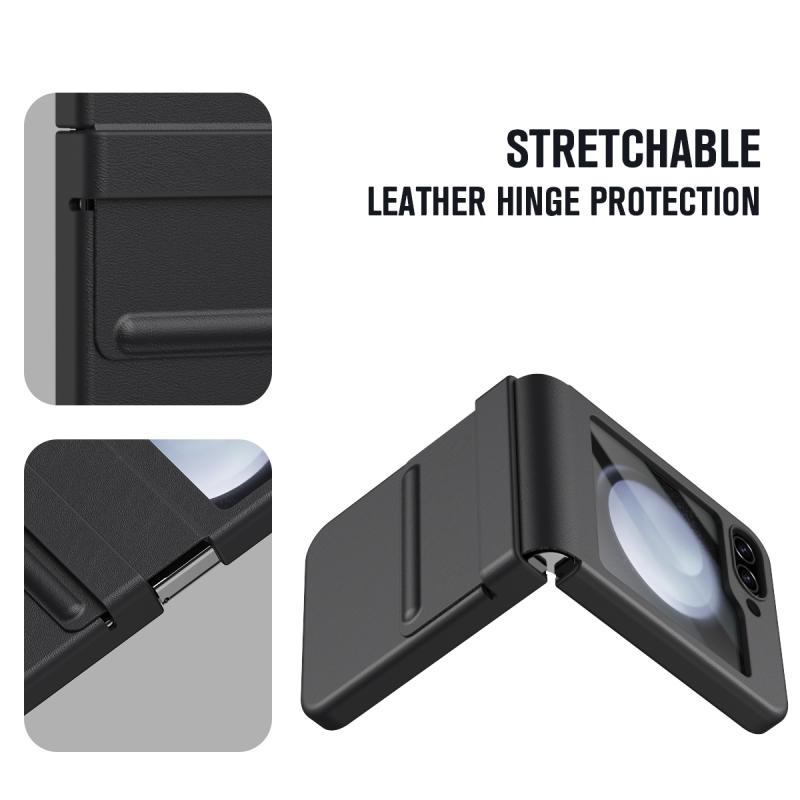 For Samsung Galaxy Z Flip5 5G Integrated Leather Texture PU + PC Full Coverage Phone Case(Black)