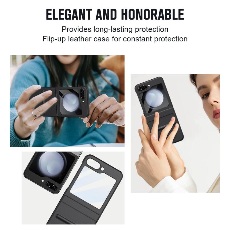 For Samsung Galaxy Z Flip5 5G Leather Texture PU + PC Full Coverage Phone Case(Black)