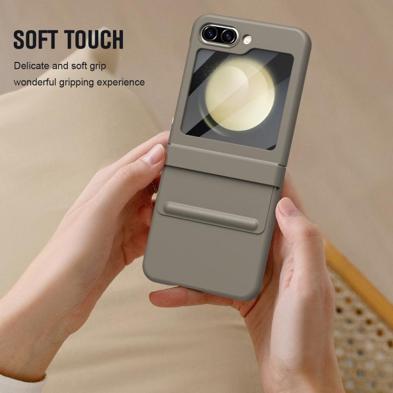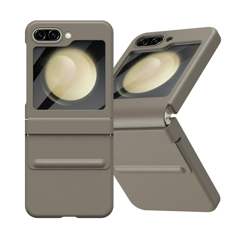 For Samsung Galaxy Z Flip5 5G Leather Texture PU + PC Full Coverage Phone Case(Light Brown)