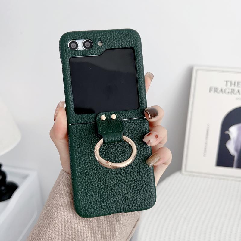 For Samsung Galaxy Z Flip5 5G Litchi Leather Ring Shockproof Phone Case(Green)