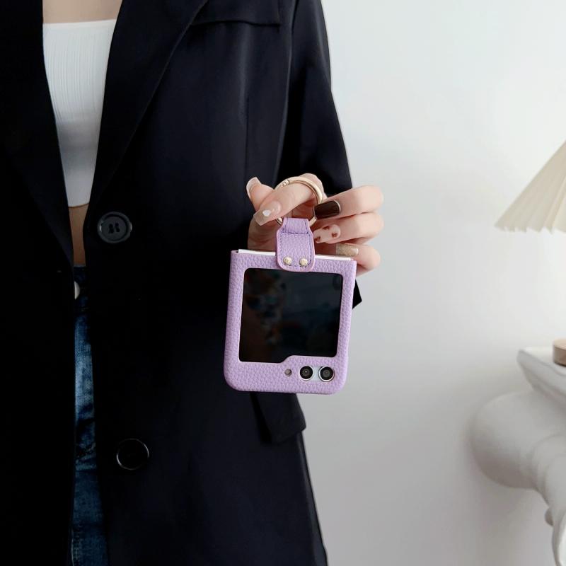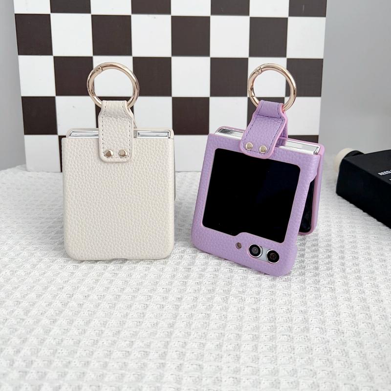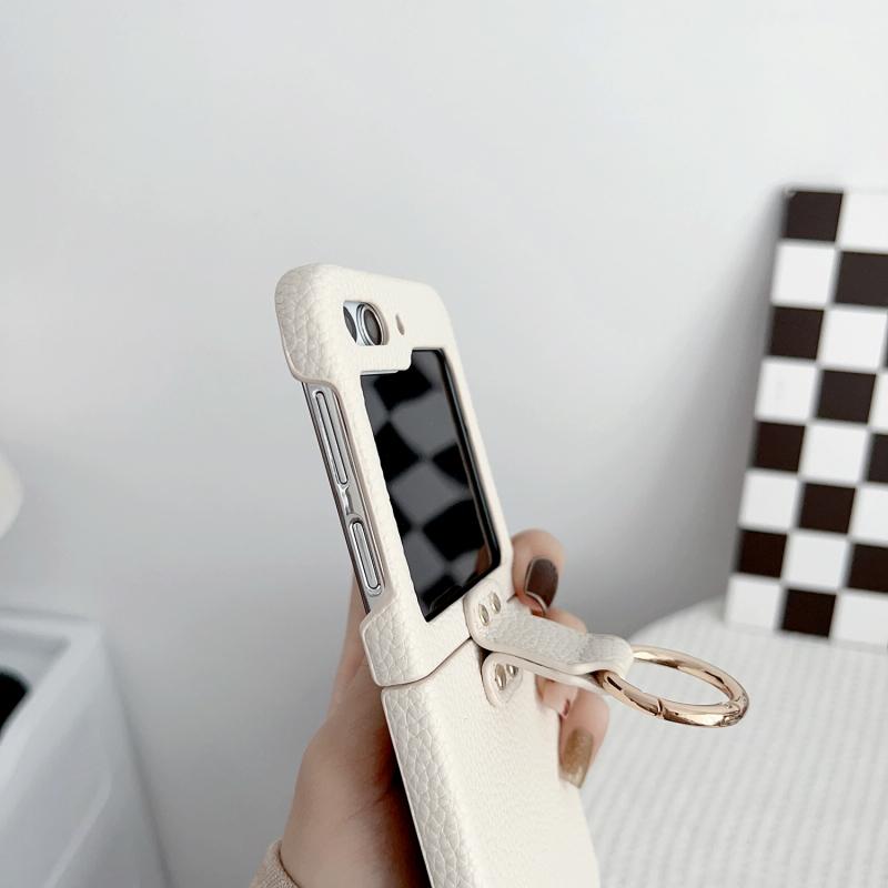 For Samsung Galaxy Z Flip5 5G Litchi Leather Ring Shockproof Phone Case(White)