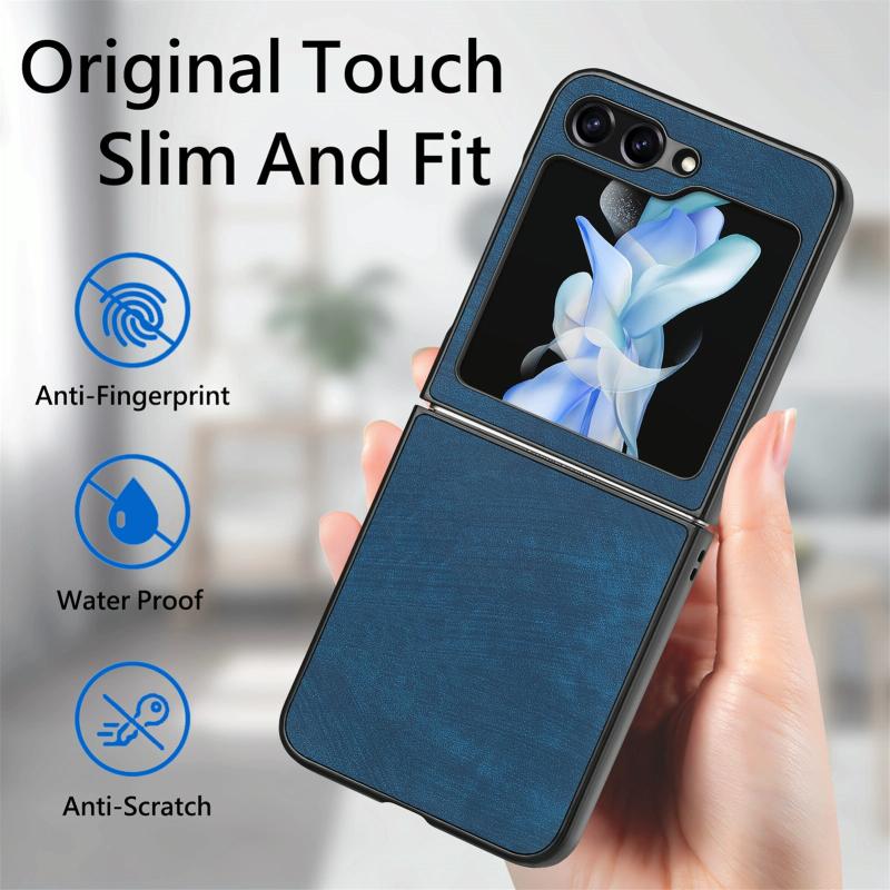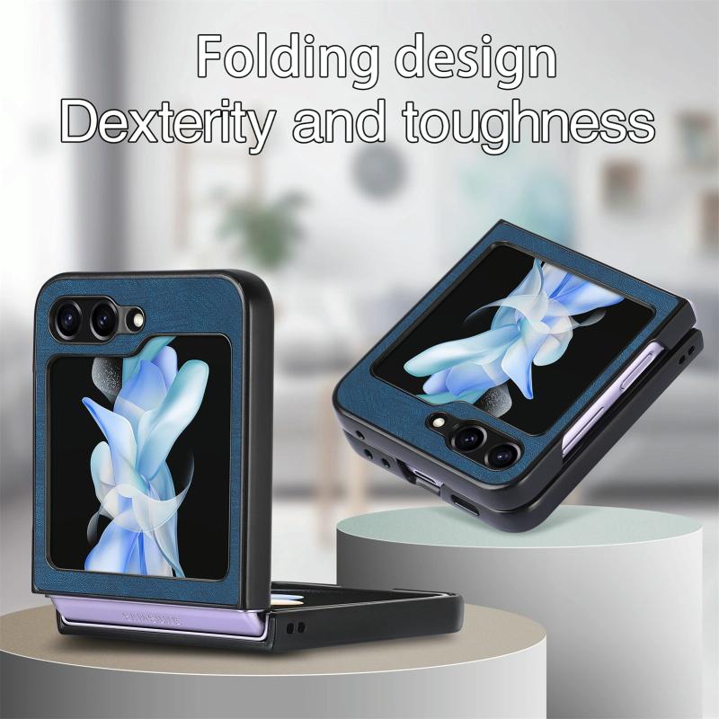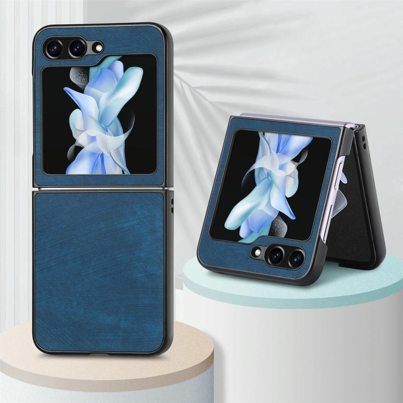 For Samsung Galaxy Z Flip5 5G Retro Leather Shockproof Phone Case(Blue)