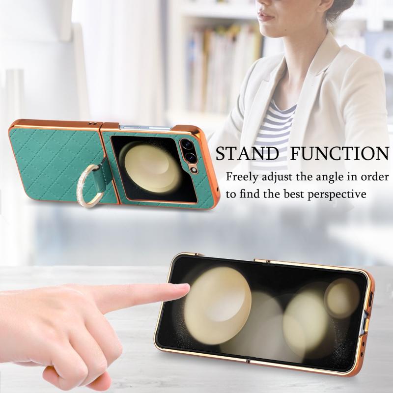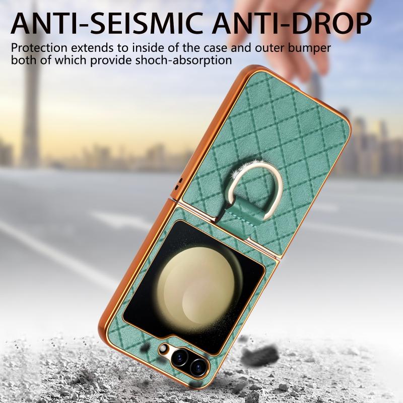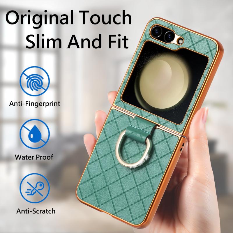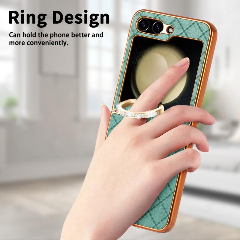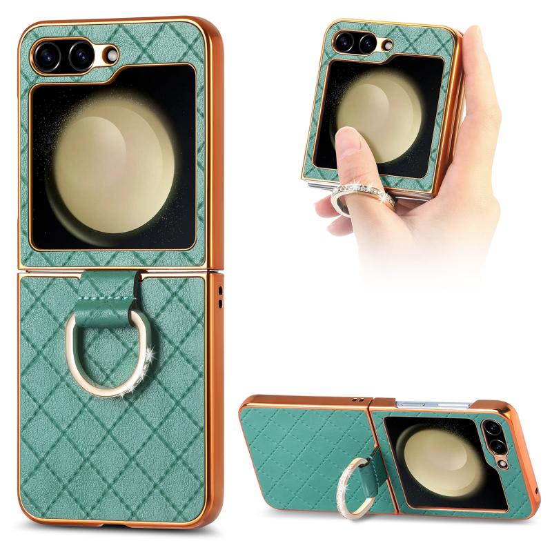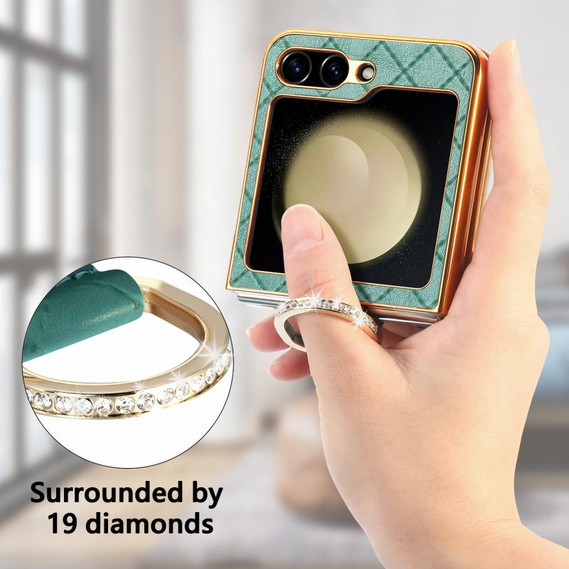 For Samsung Galaxy Z Flip5 5G Rhombus Plated Diamond Ring Phone Case(Green)