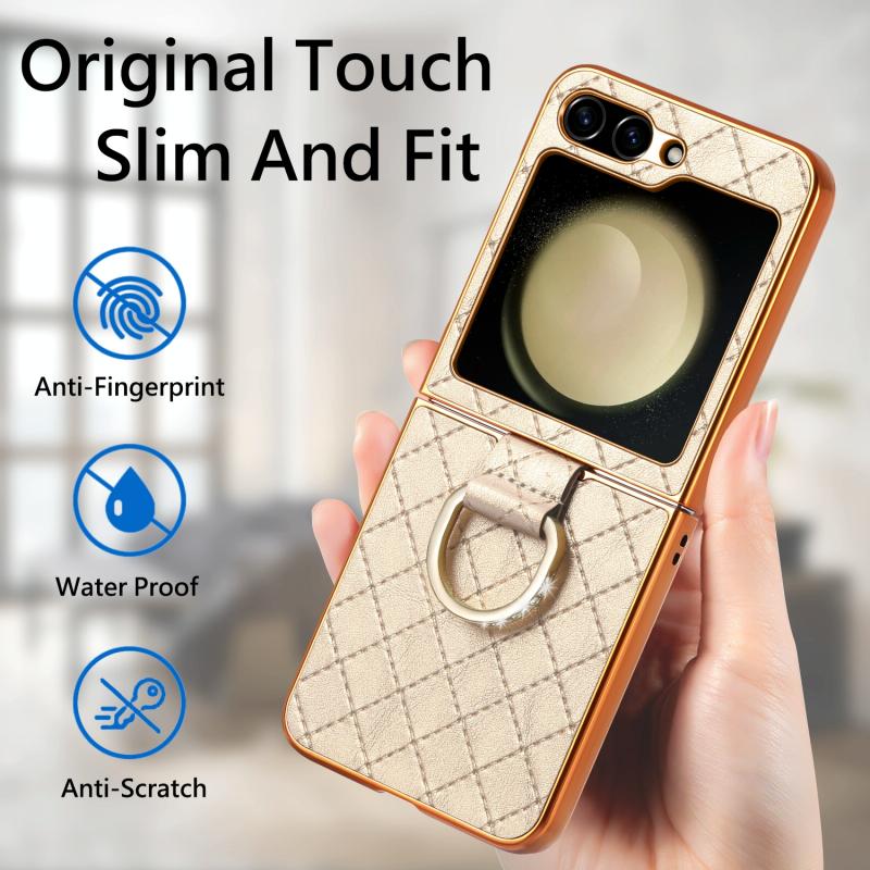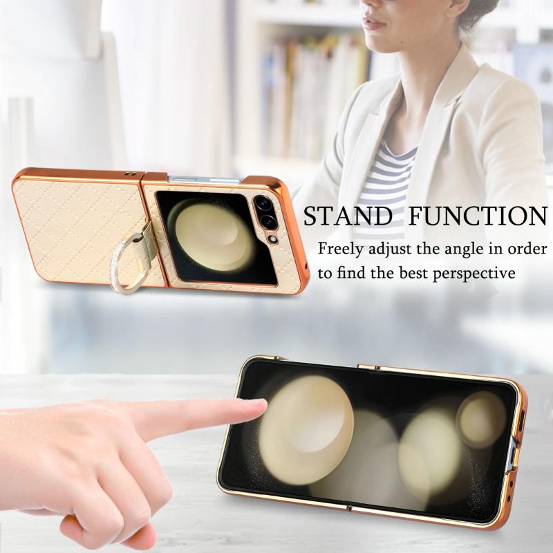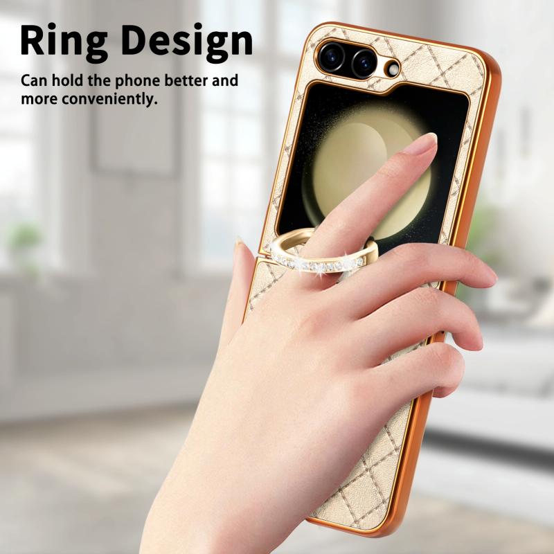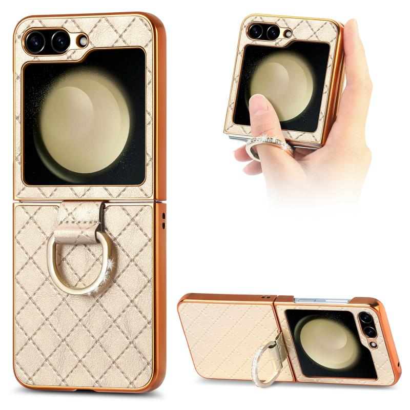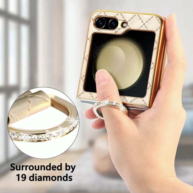 For Samsung Galaxy Z Flip5 5G Rhombus Plated Diamond Ring Phone Case(Khaki)