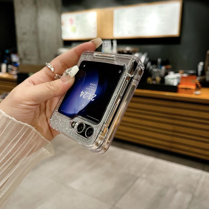 For Samsung Galaxy Z Flip5 5G Skin Feel PC Flash Paper Shockproof Phone Case(Blue Silver Gradient)