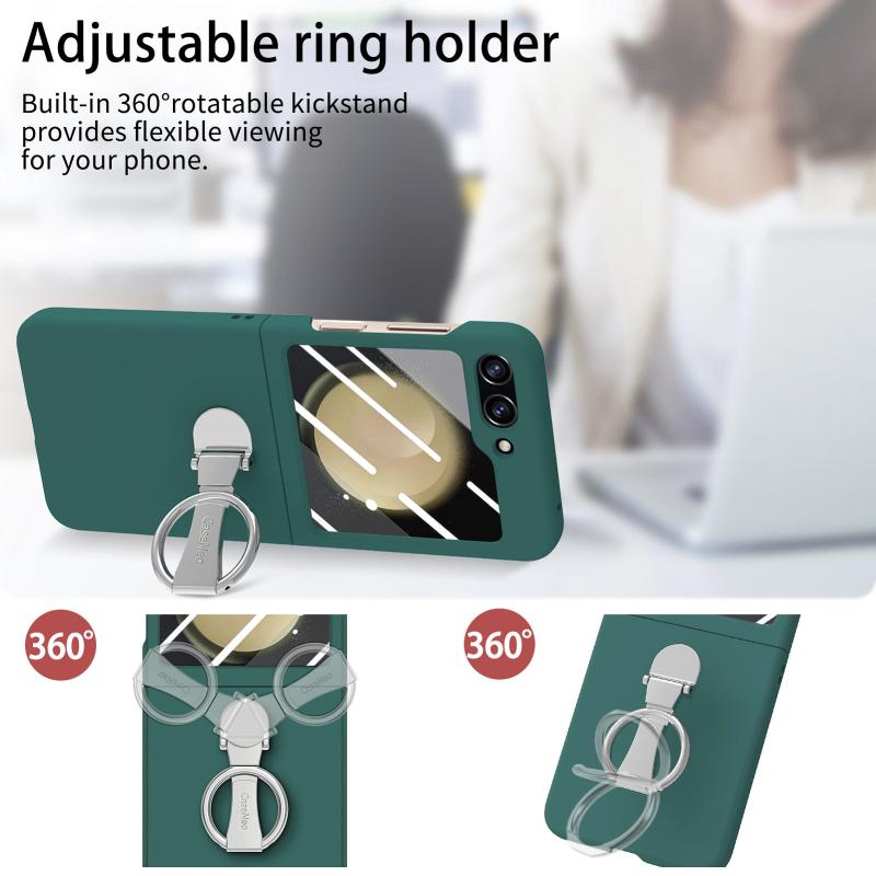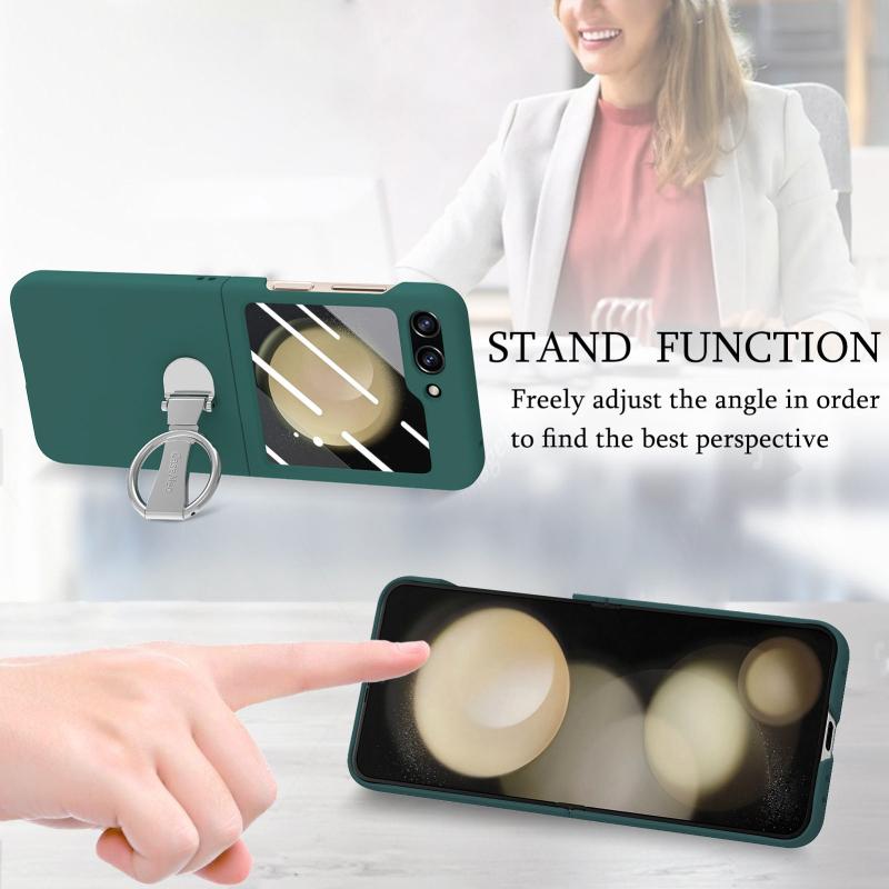 For Samsung Galaxy Z Flip5 5G Skin-Sensitive Integrated Ring Phone Case(Green)