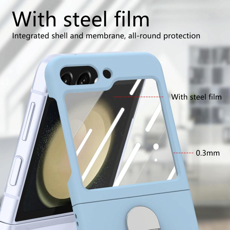 For Samsung Galaxy Z Flip5 5G Skin-Sensitive Integrated Ring Phone Case(Light blue)