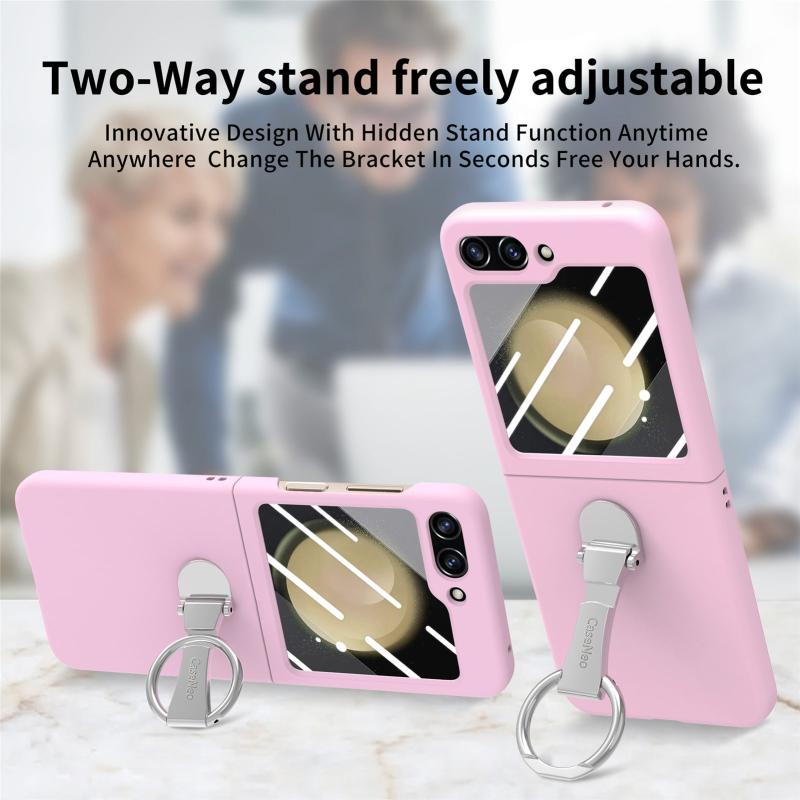 For Samsung Galaxy Z Flip5 5G Skin-Sensitive Integrated Ring Phone Case(Pink)