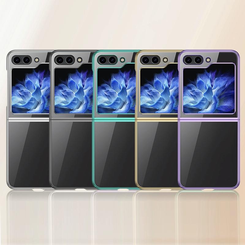 For Samsung Galaxy Z Flip5 5G Transparent Electroplating All-inclusive Folding Phone Case(Black)