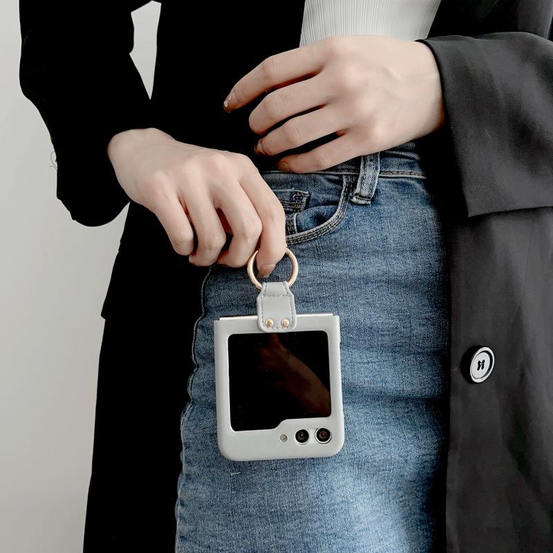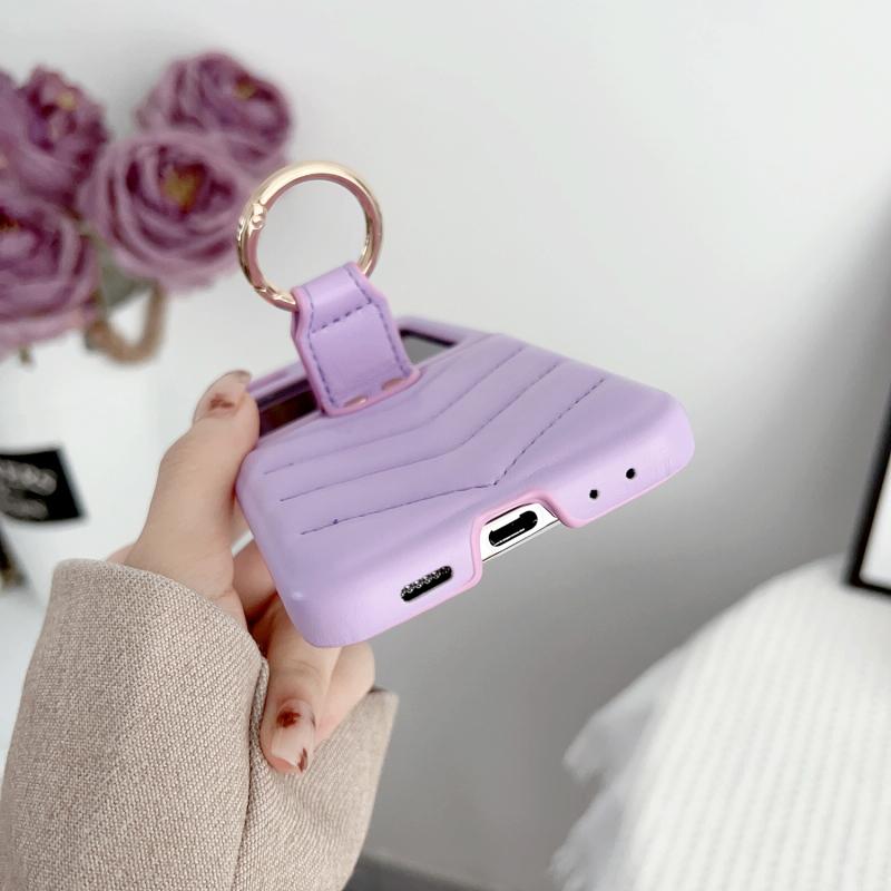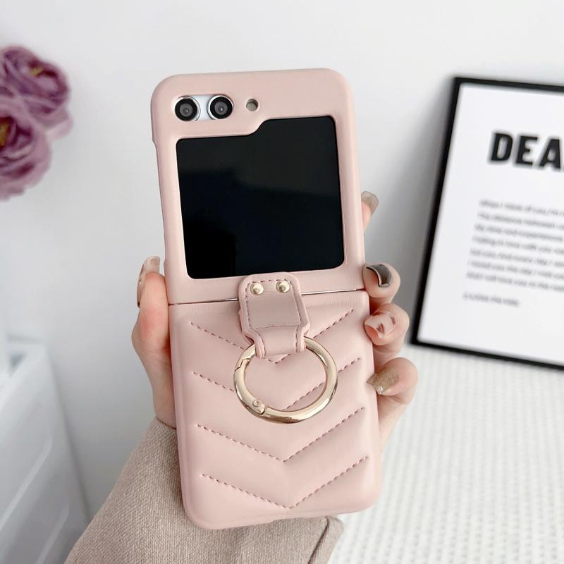 For Samsung Galaxy Z Flip5 5G V-shaped Pattern Leather Ring Holder Shockproof Phone Case(Pink)