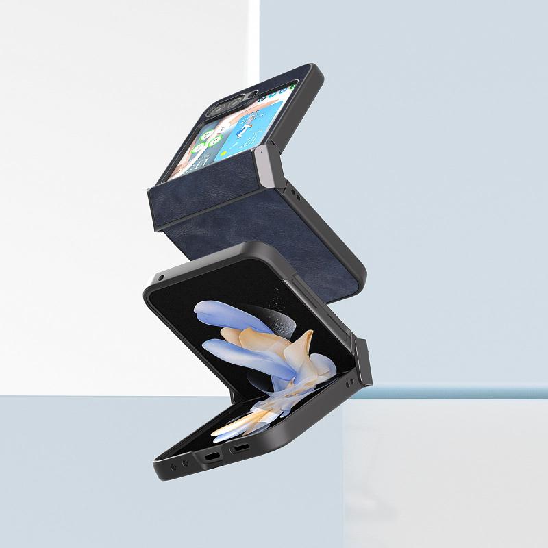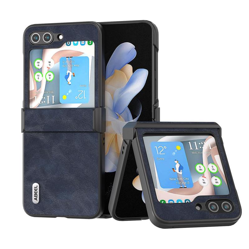 For Samsung Galaxy Z Flip5 ABEEL Cowhide Texture PU Phone Case(Blue)