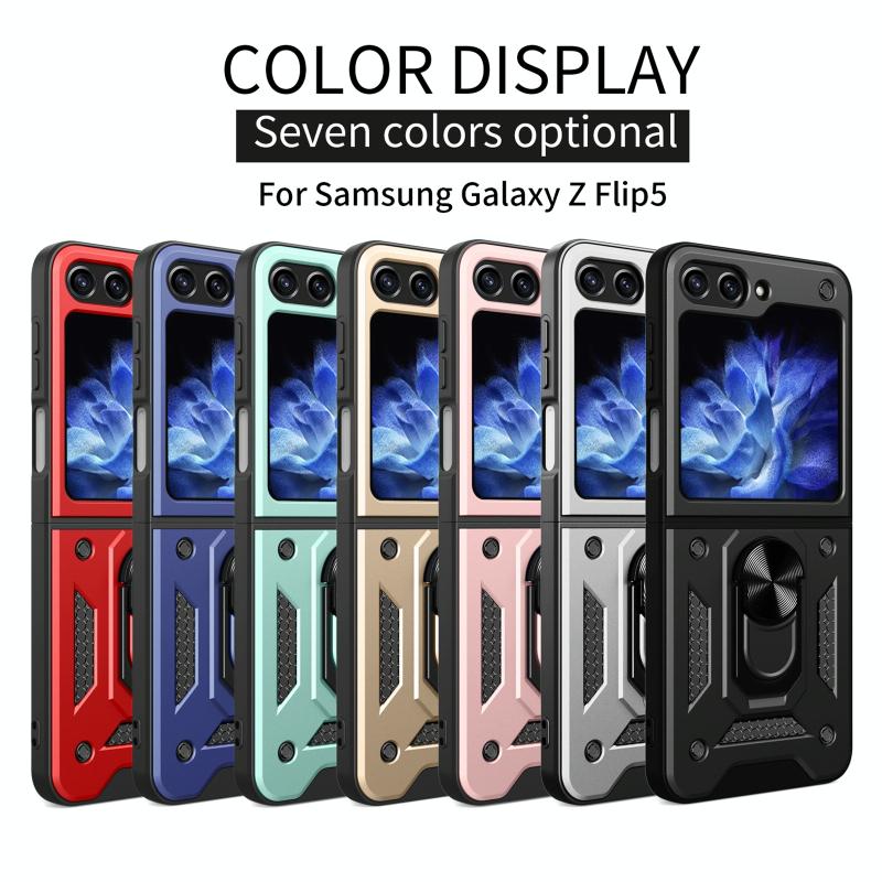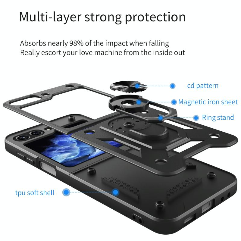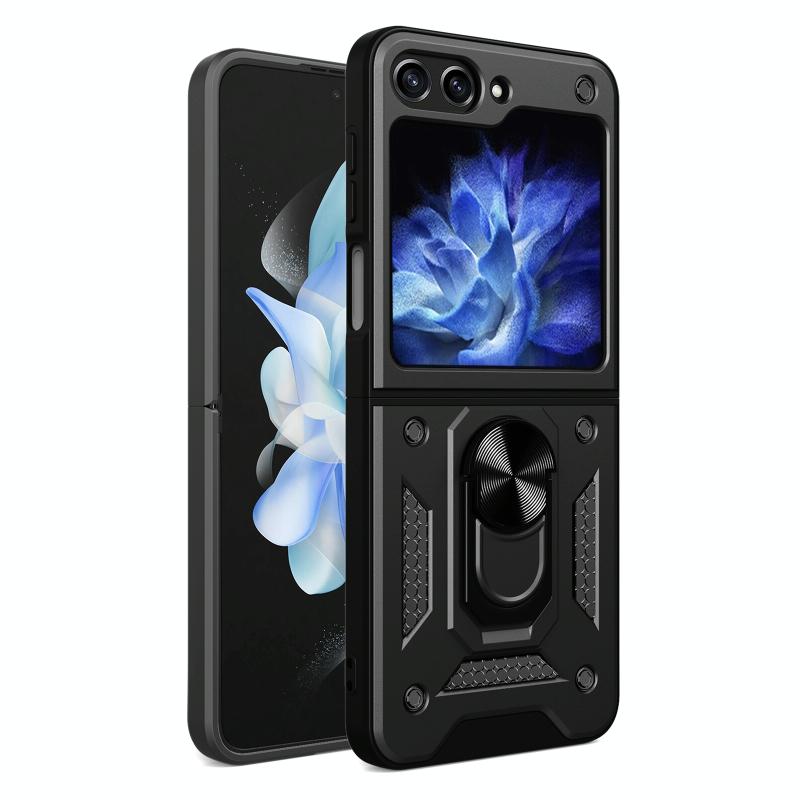 For Samsung Galaxy Z Flip5 Armor Magnetic Bracket TPU+PC Phone Case(Black)