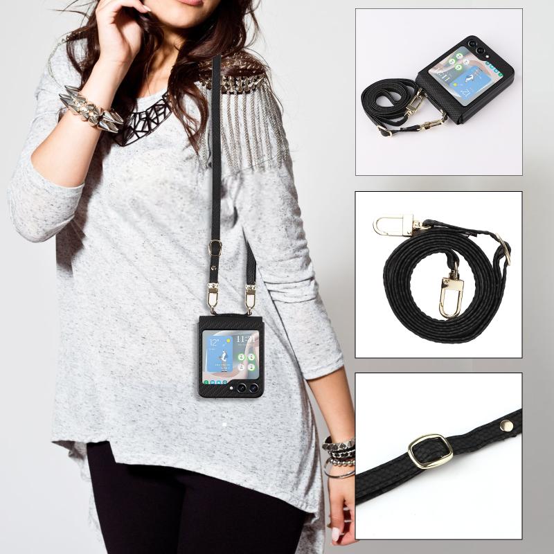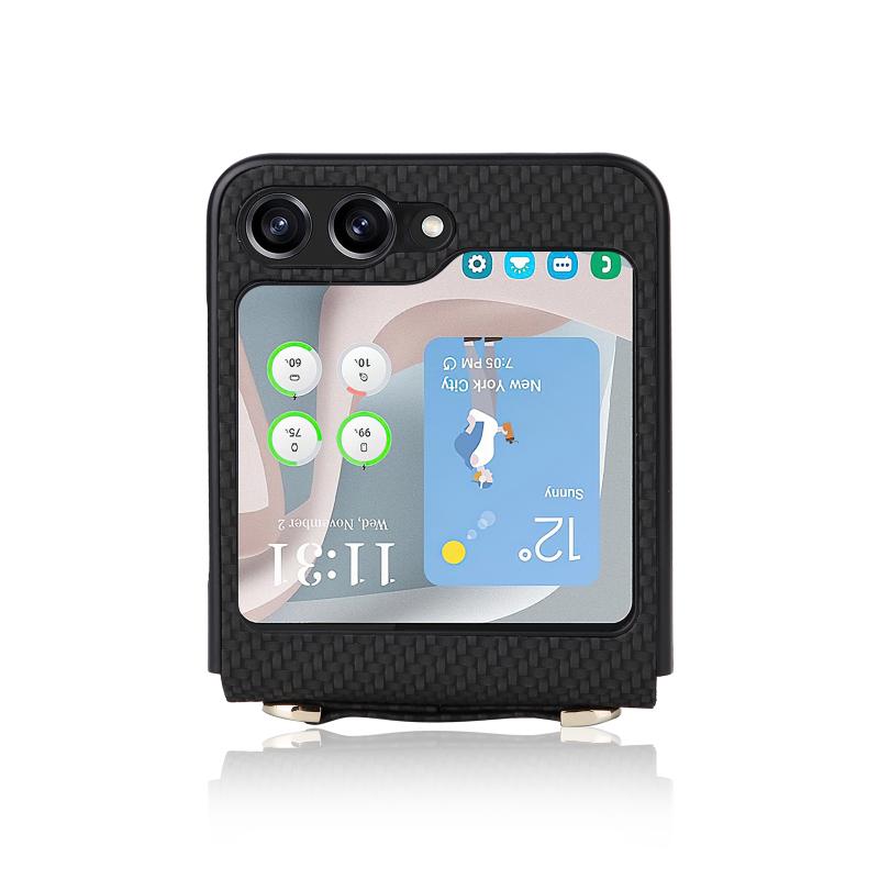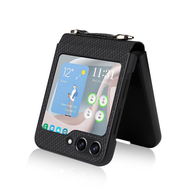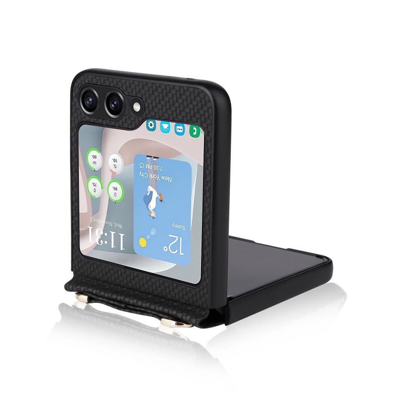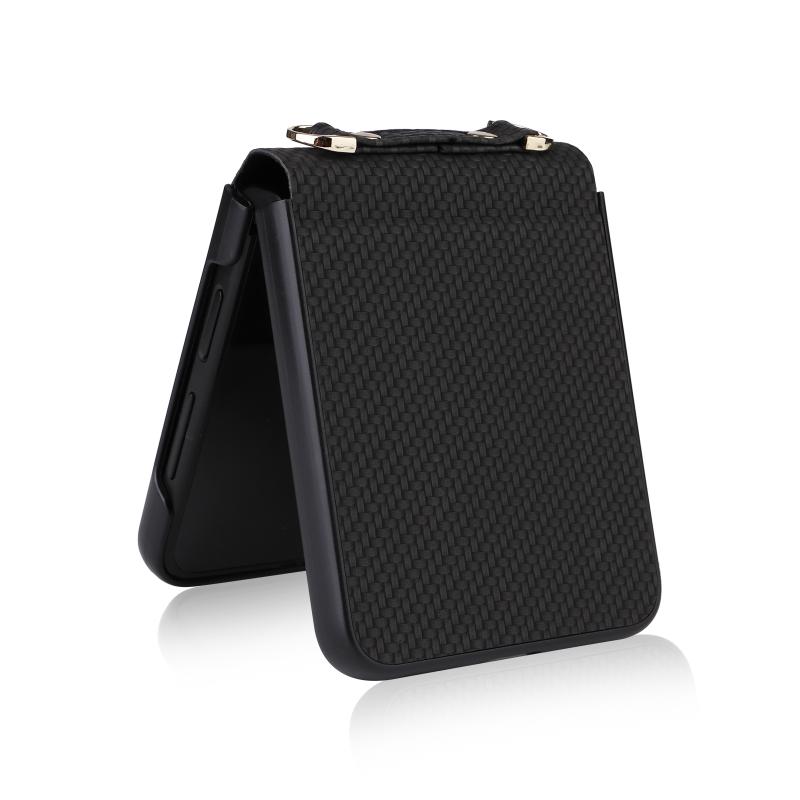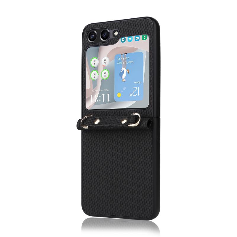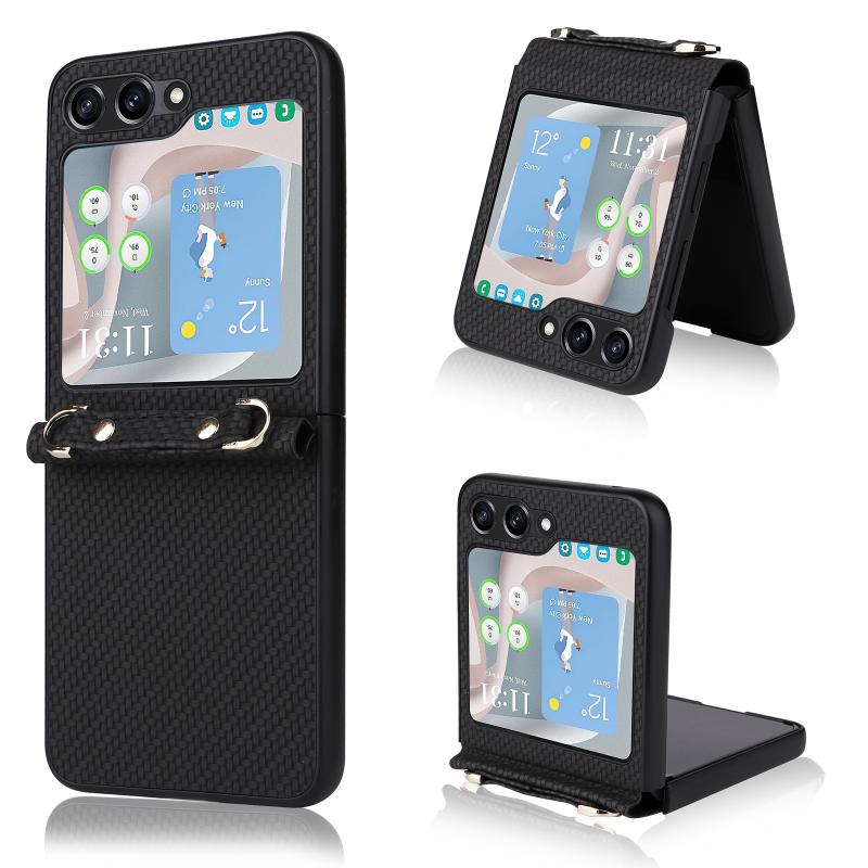 For Samsung Galaxy Z Flip5 Braided Texture Phone Case with Lanyard(Black)