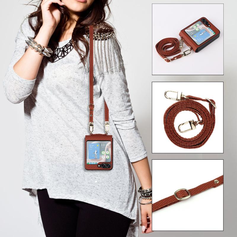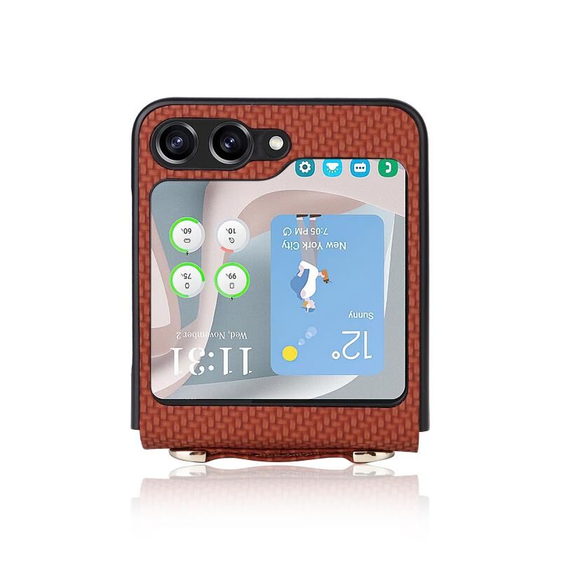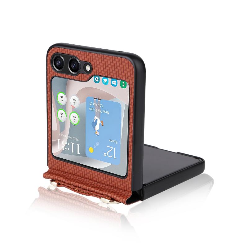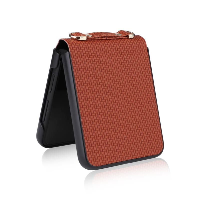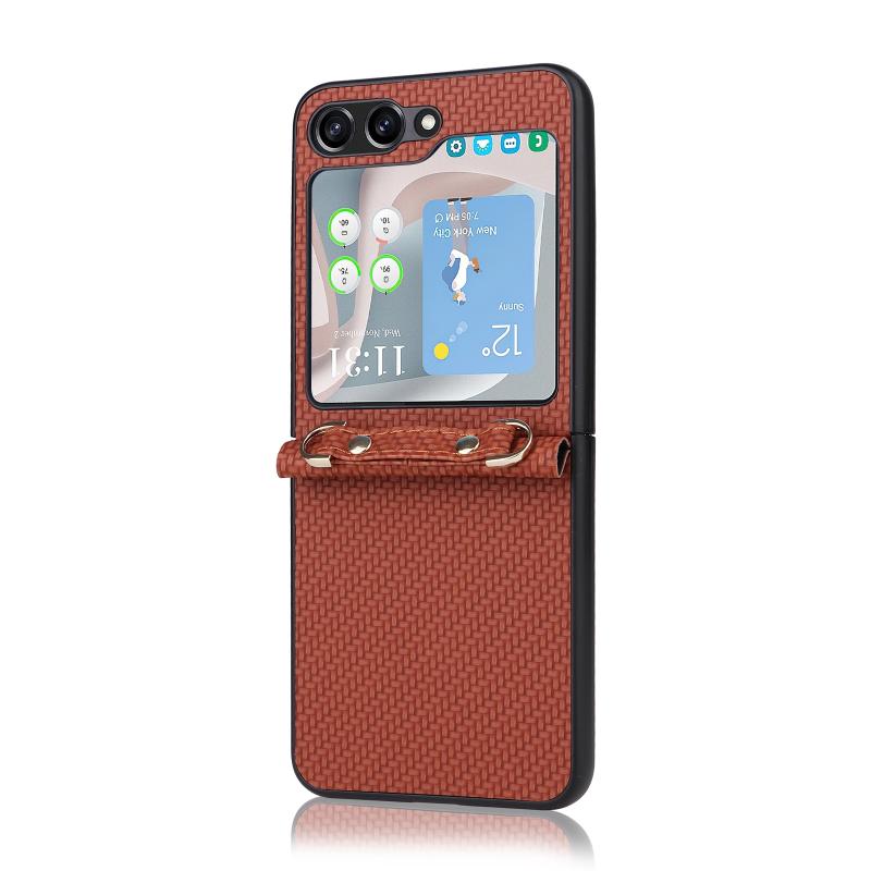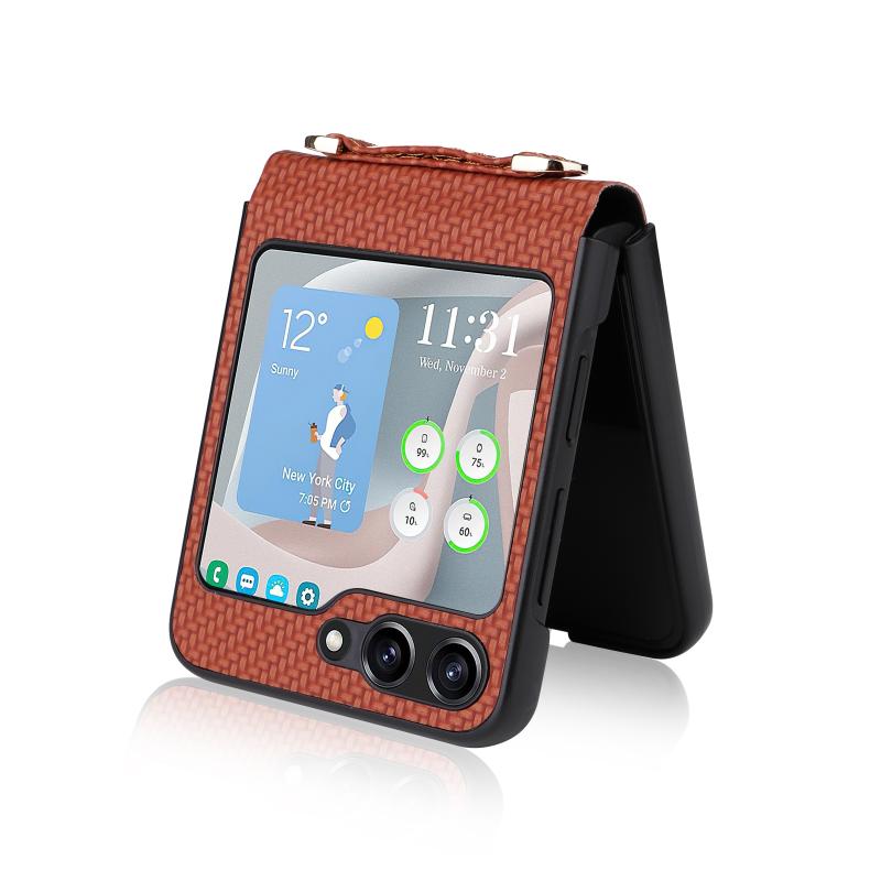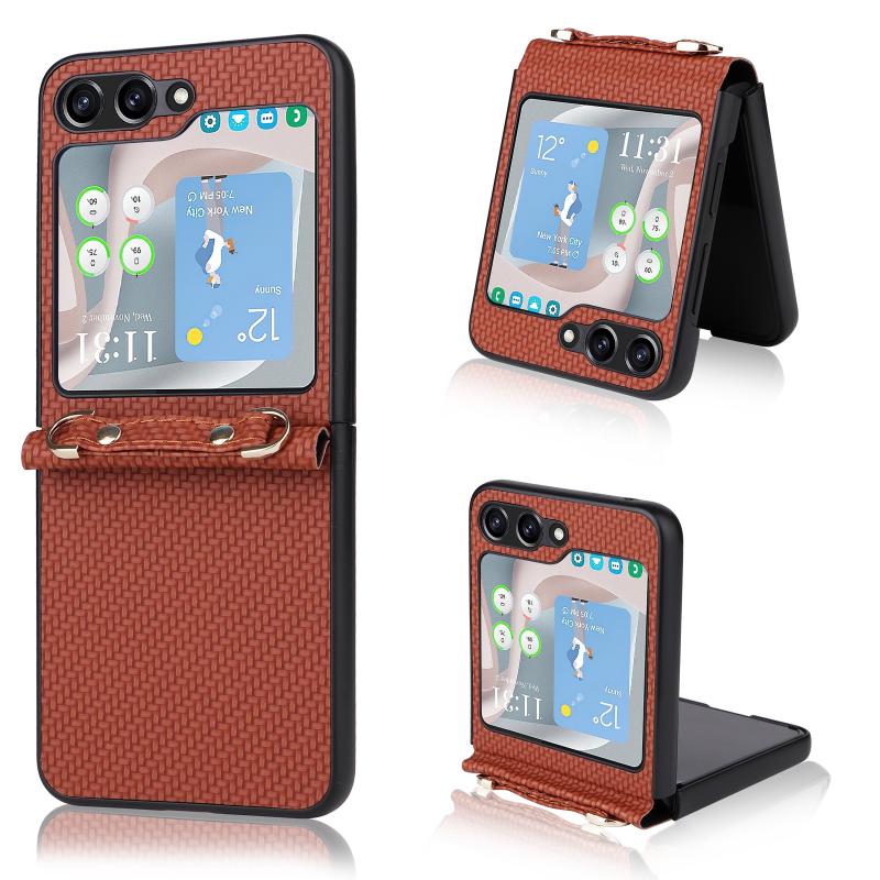 For Samsung Galaxy Z Flip5 Braided Texture Phone Case with Lanyard(Brown)