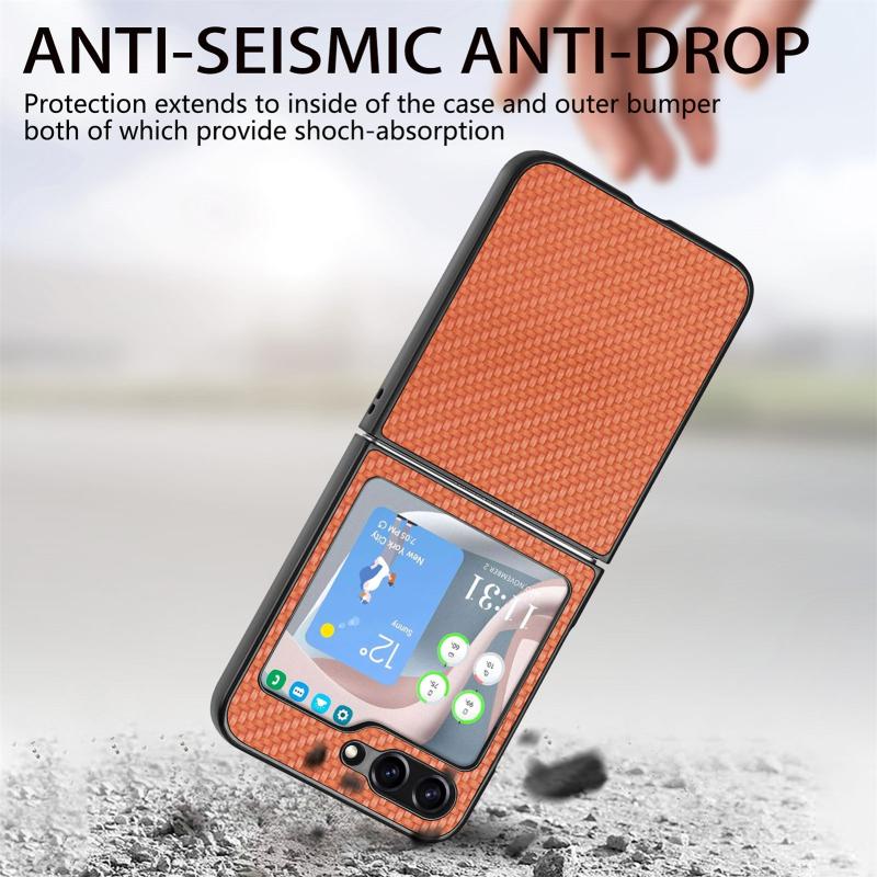 For Samsung Galaxy Z Flip5 Carbon Fiber Fold Back Phone Case(Brown)