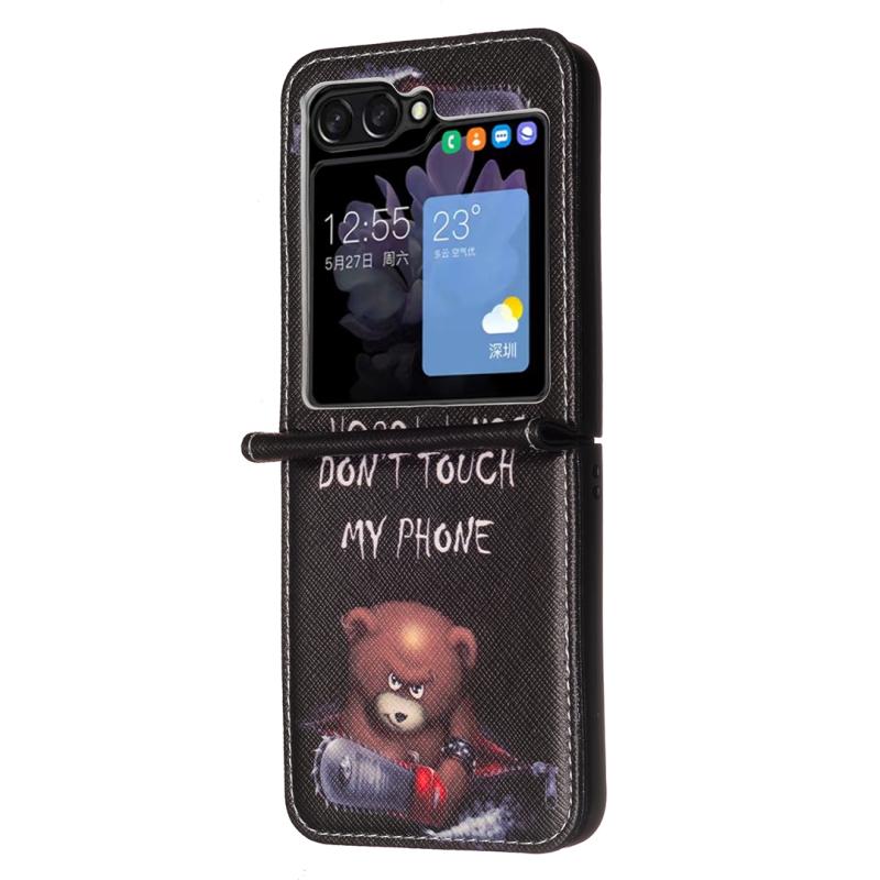 For Samsung Galaxy Z Flip5 Colored Drawing Pattern PU + PC Shockproof Phone Case(Bear)