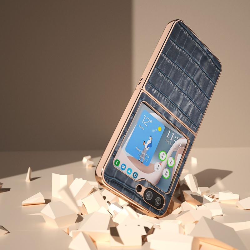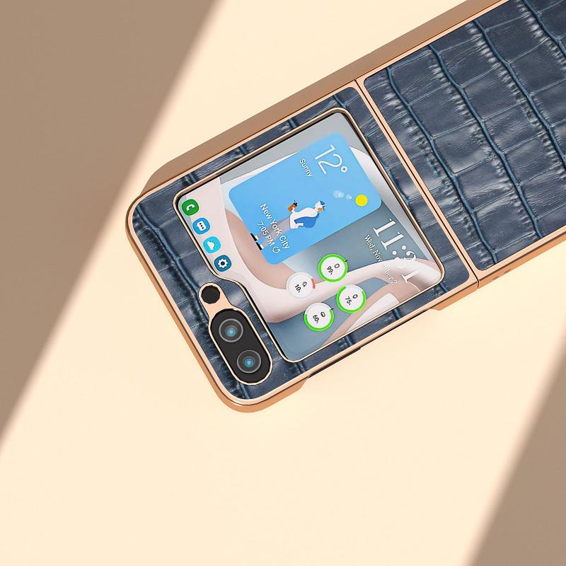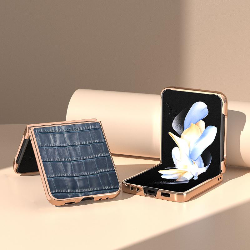 For Samsung Galaxy Z Flip5 Crocodile Texture Genuine Leather Electroplating Phone Case(Blue)