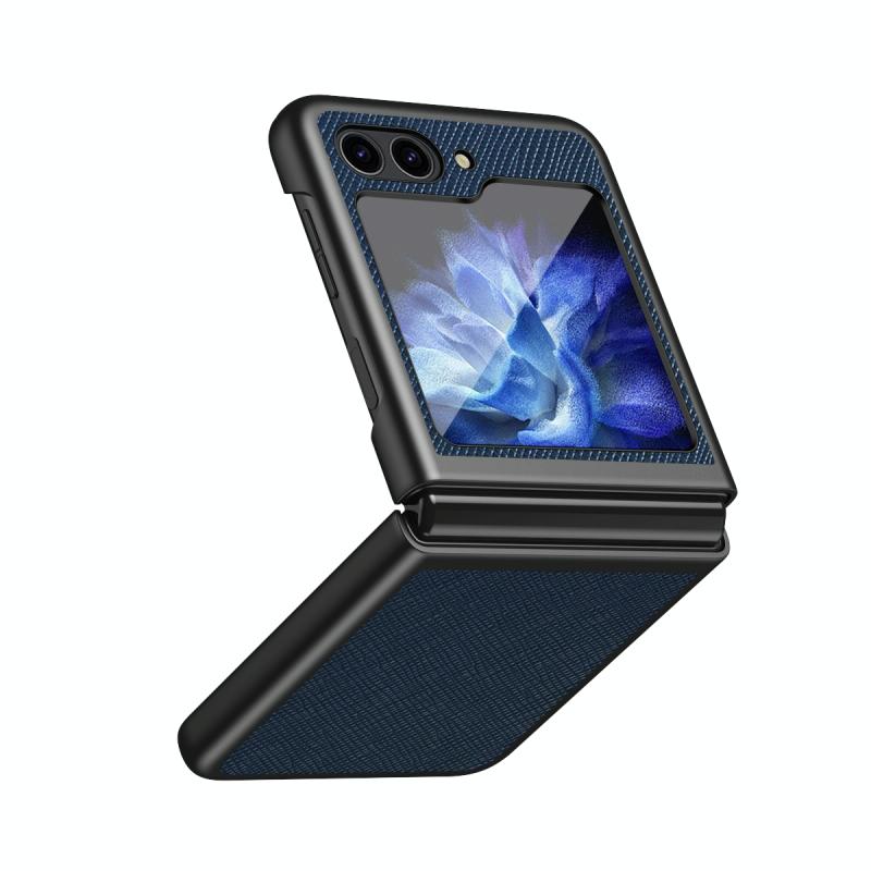 For Samsung Galaxy Z Flip5 Cross Texture All Inclusive Shockproof Protective Phone Case(Blue)