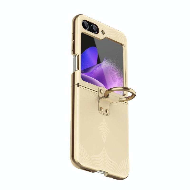 For Samsung Galaxy Z Flip5 Electroplated Embossed Leather Phone Case with Ring(Gold)