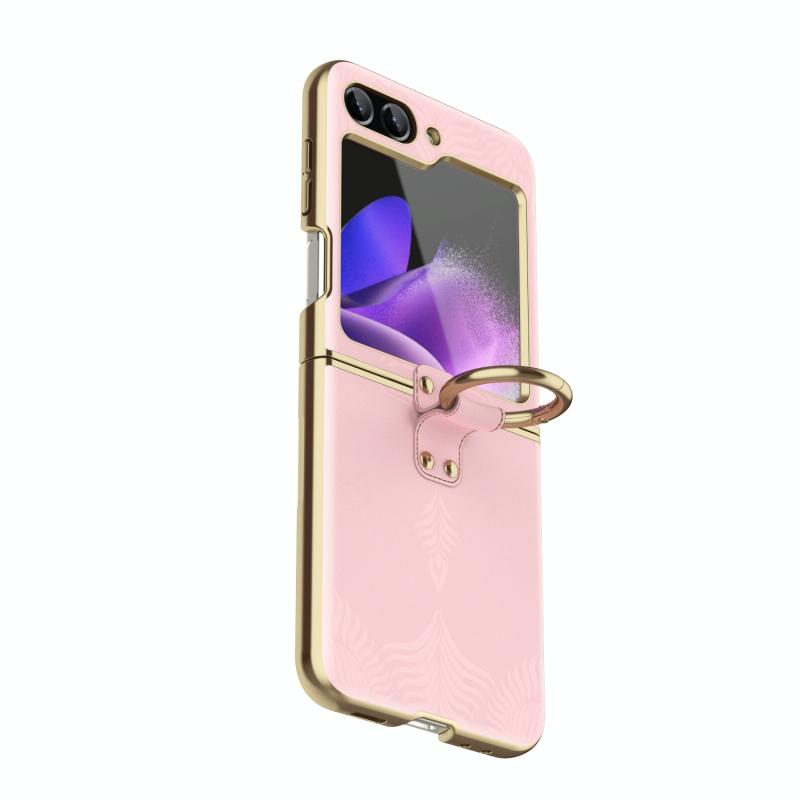 For Samsung Galaxy Z Flip5 Electroplated Embossed Leather Phone Case with Ring(Pink)