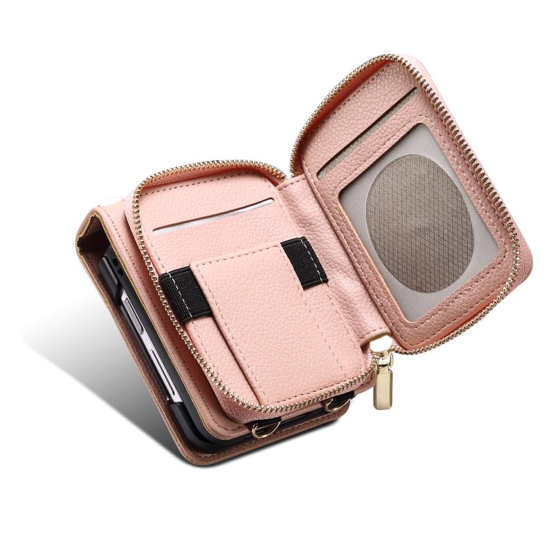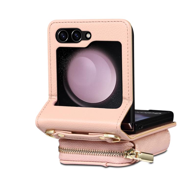 For Samsung Galaxy Z Flip5 Folding Leather Phone Case with Long Lanyard(Rose Gold)