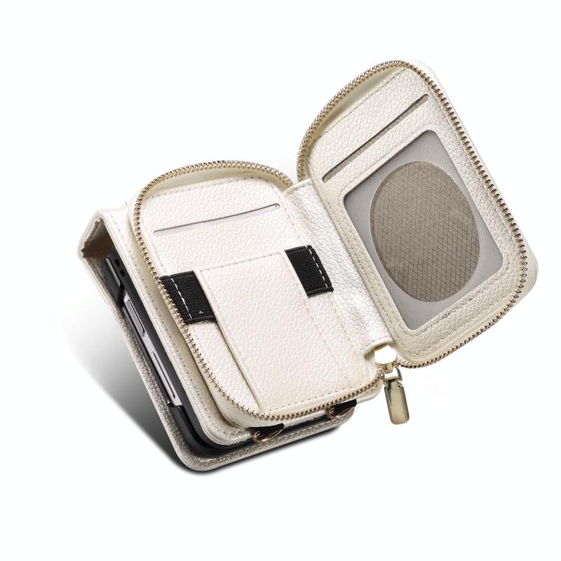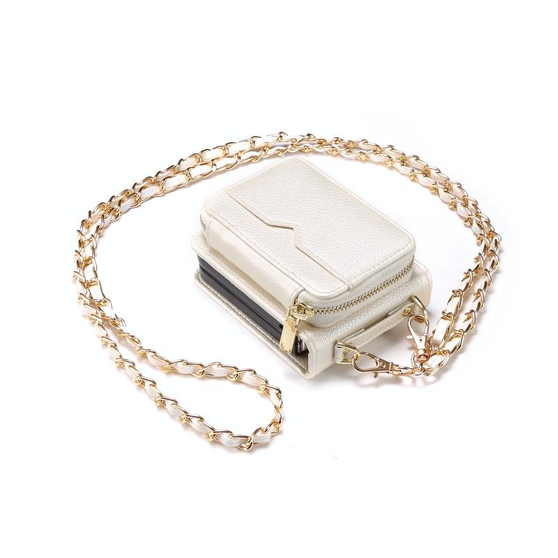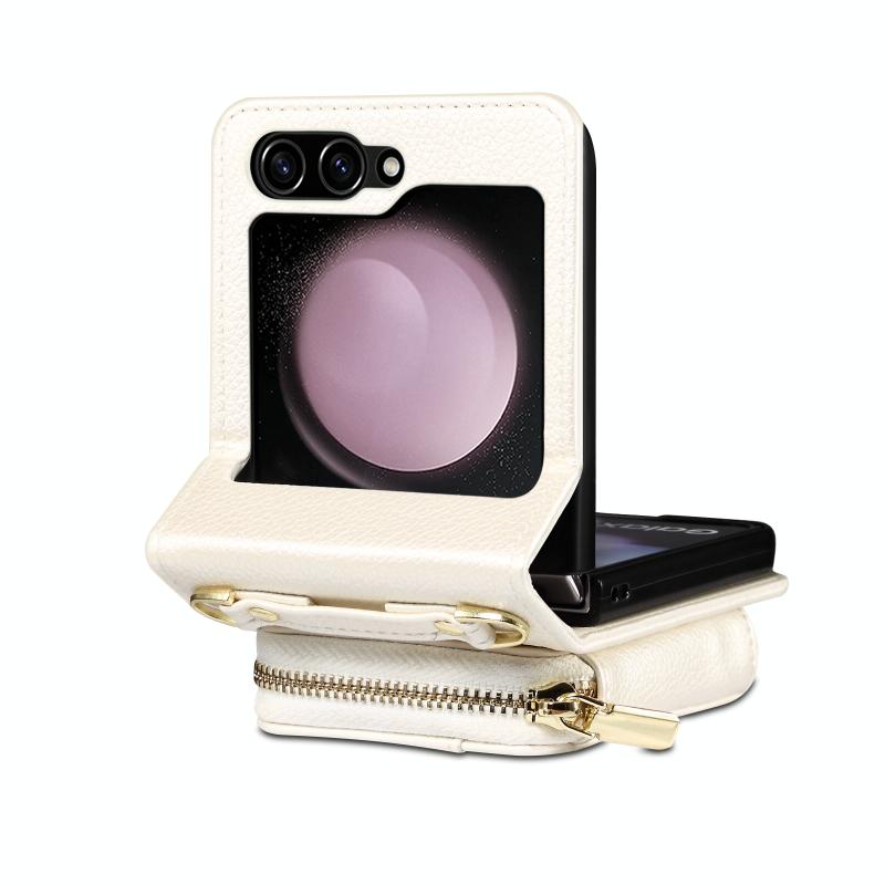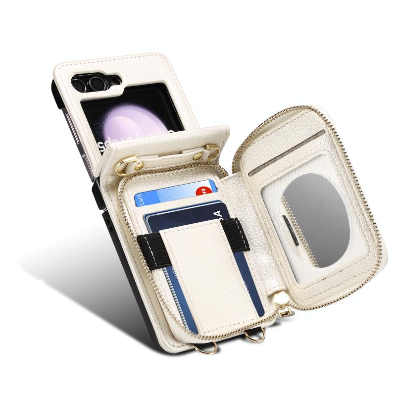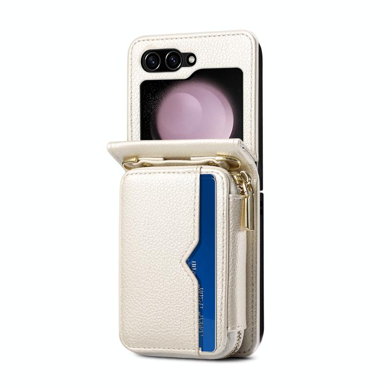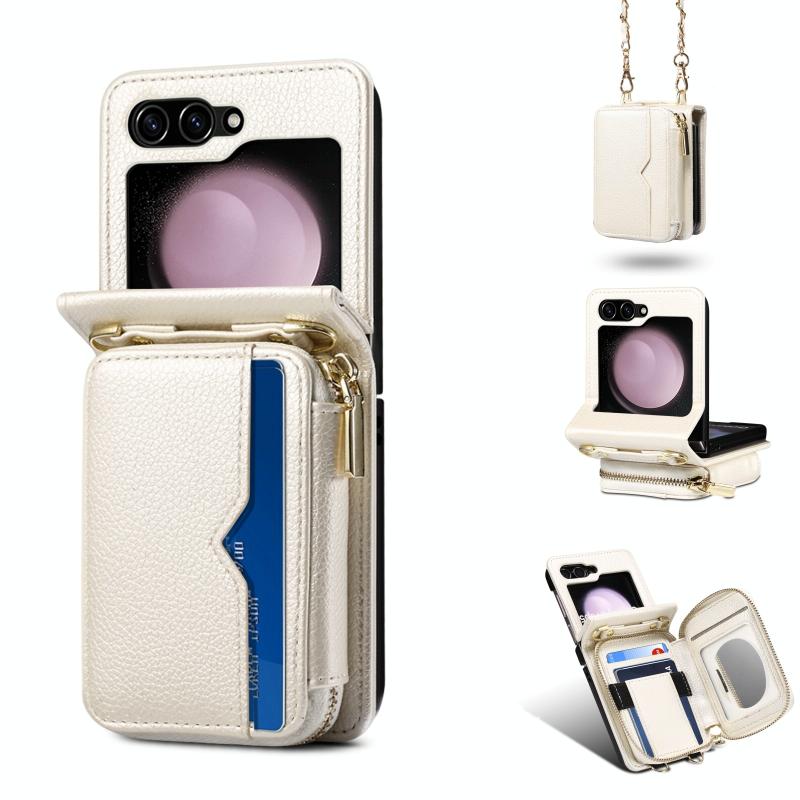 For Samsung Galaxy Z Flip5 Folding Leather Phone Case with Long Lanyard(White)