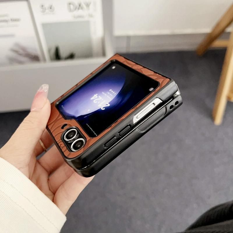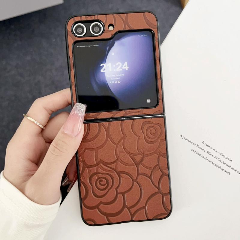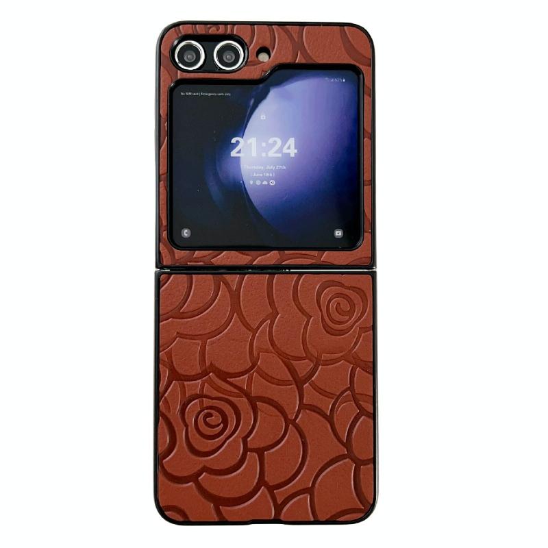 For Samsung Galaxy Z Flip5 Impression Flower Pattern Protective Phone Case(Brown)