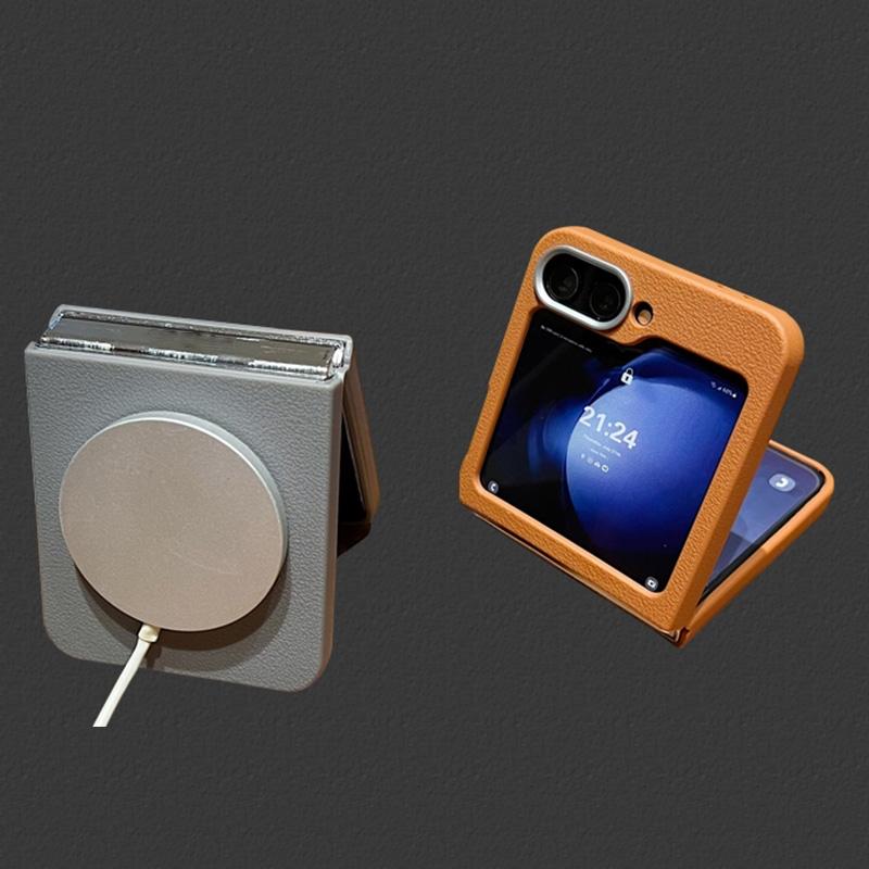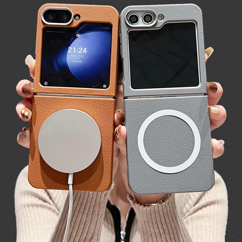 For Samsung Galaxy Z Flip5 Leather Texture Design MagSafe Full Coverage Phone Case(Blue)