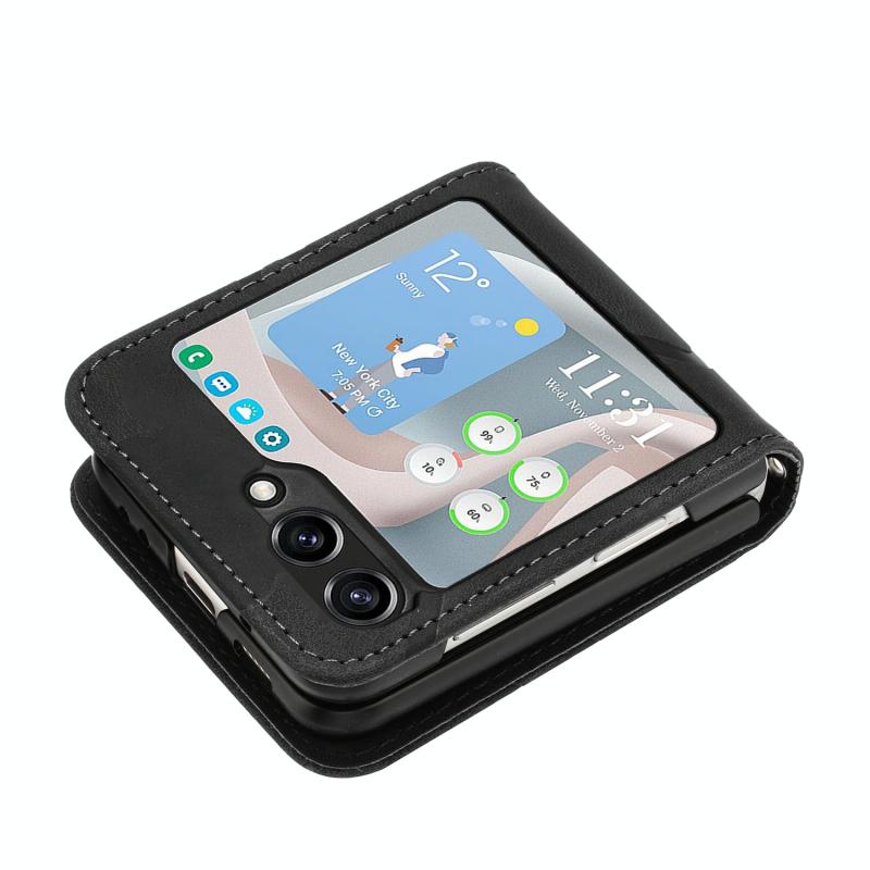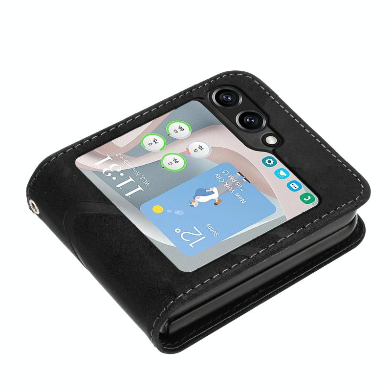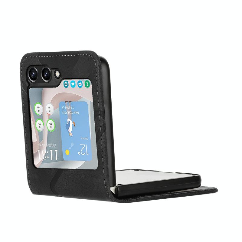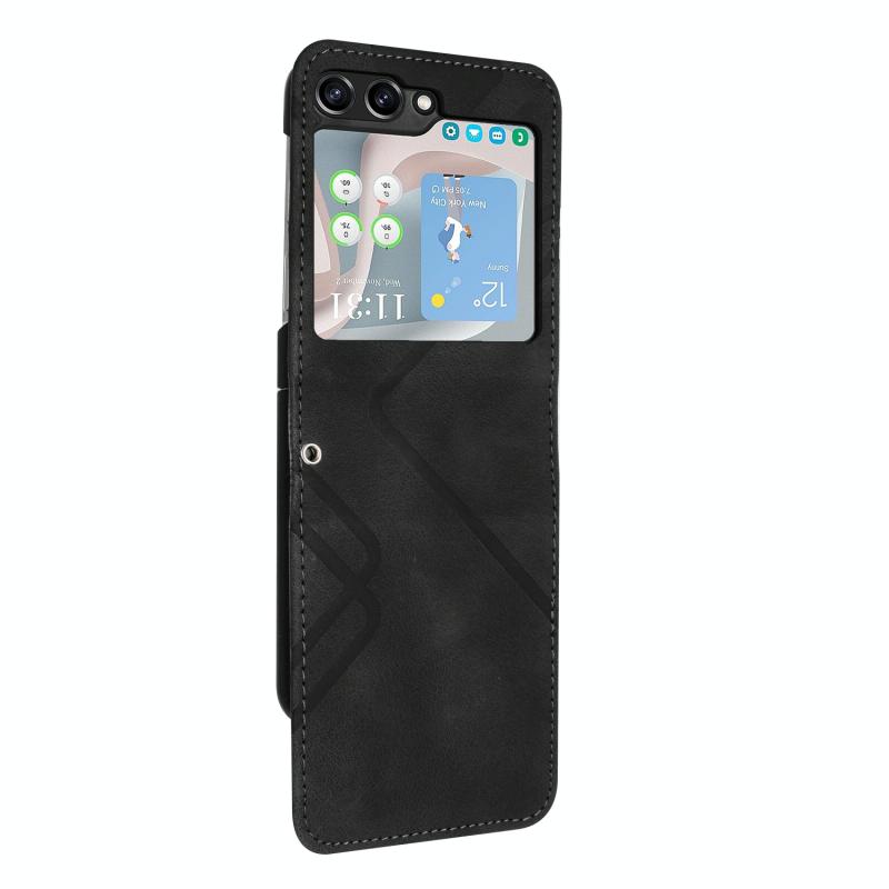 For Samsung Galaxy Z Flip5 Line Pattern Skin Feel Leather Phone Case(Black)
