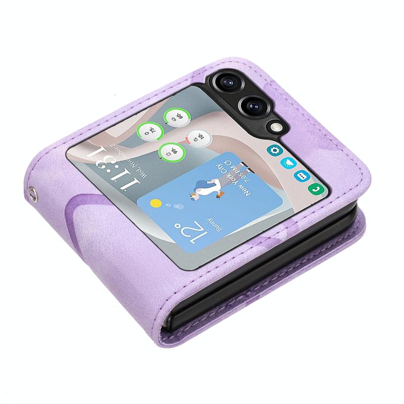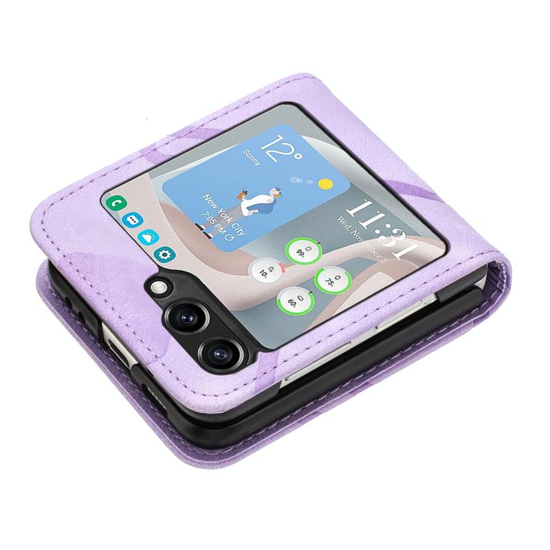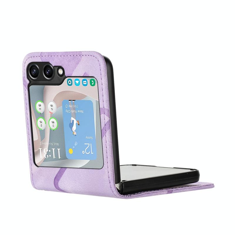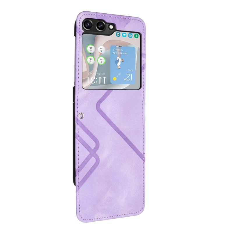 For Samsung Galaxy Z Flip5 Line Pattern Skin Feel Leather Phone Case(Light Purple)