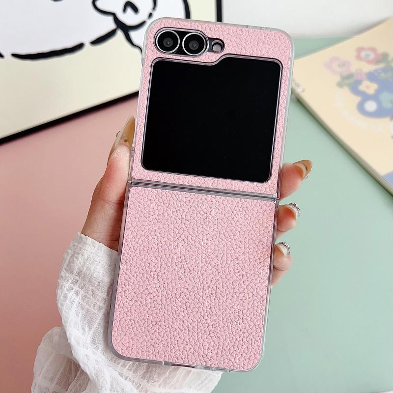 For Samsung Galaxy Z Flip5 Litchi Texture Leather Clear Jelly PC Phone Case(Pink)