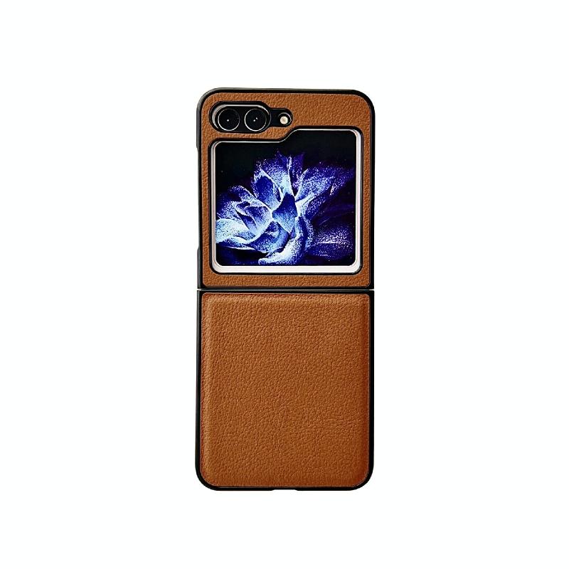 For Samsung Galaxy Z Flip5 Litchi Texture PC +TPU Shockproof Phone Case(Coffee)