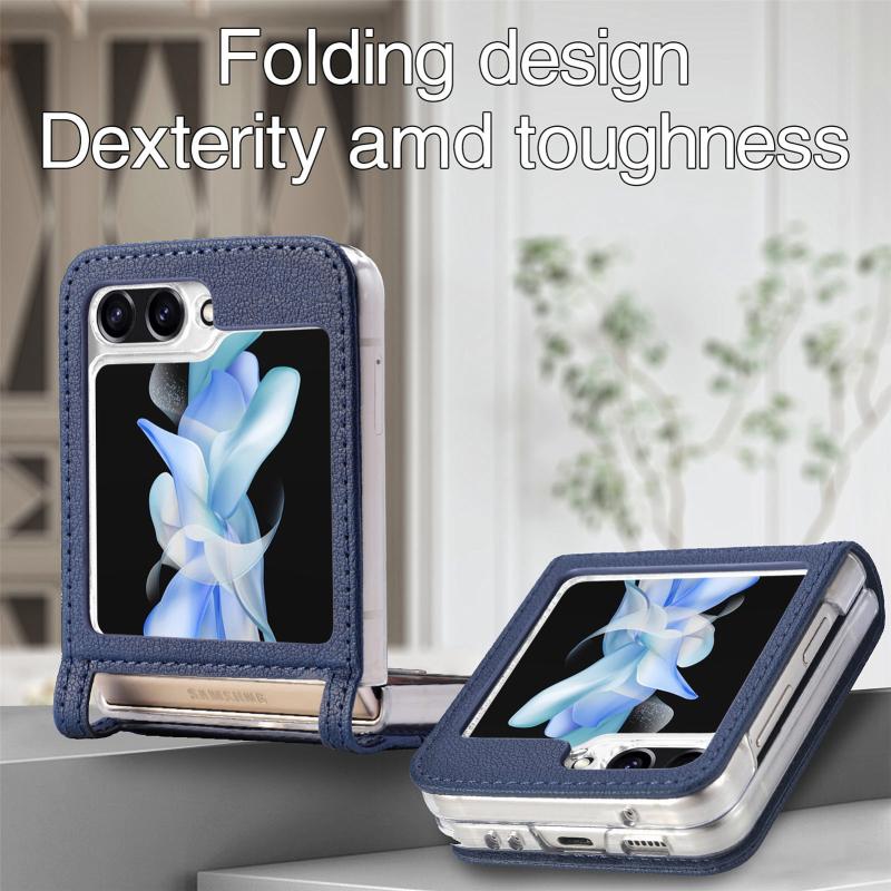 For Samsung Galaxy Z Flip5 Litchi Texture PU Card Fold Back Phone Case(Blue)